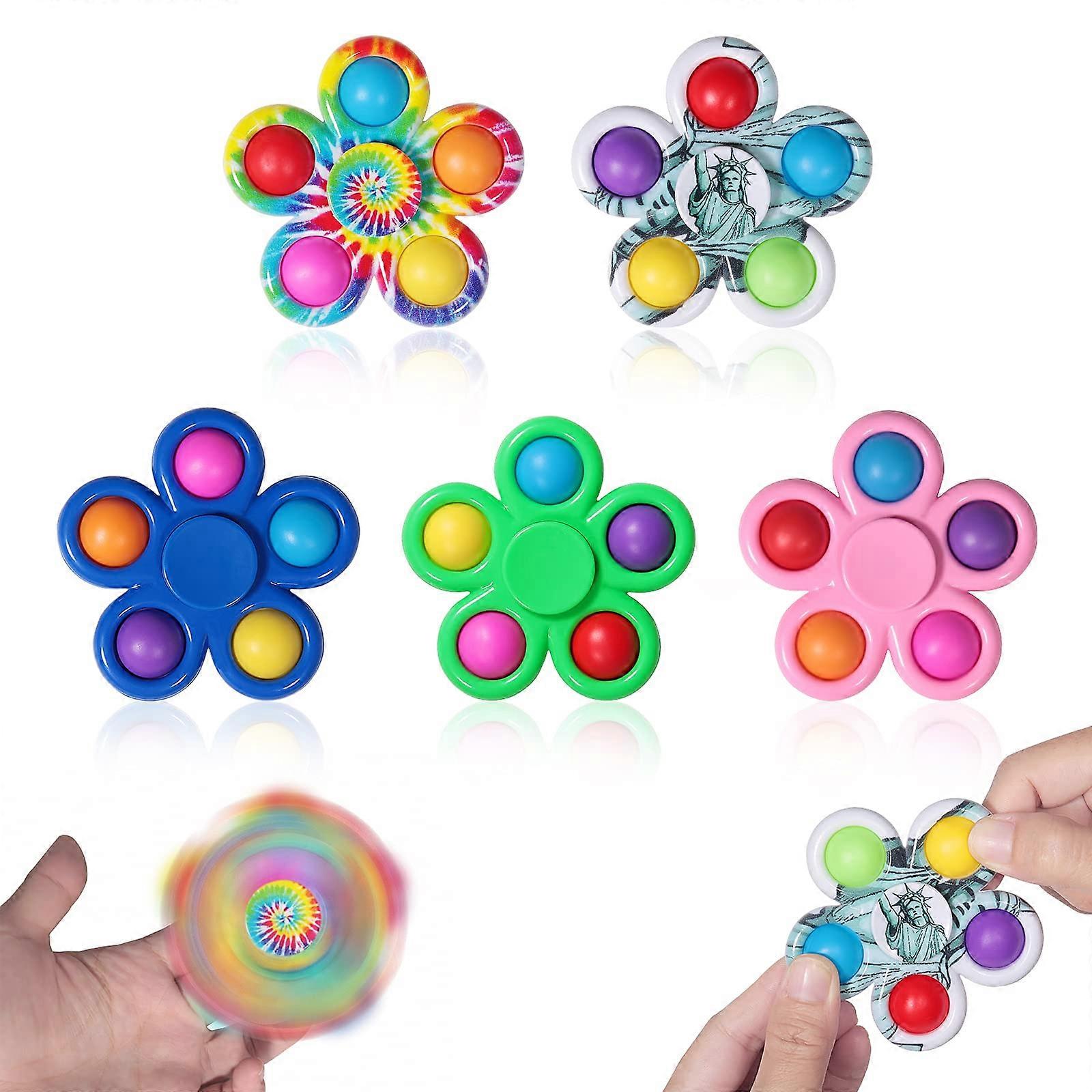 5 Pieces Tie Dye Pop Fidget Spinner Set Bundle, Dual Action Sensory Toys for Kids and Adults