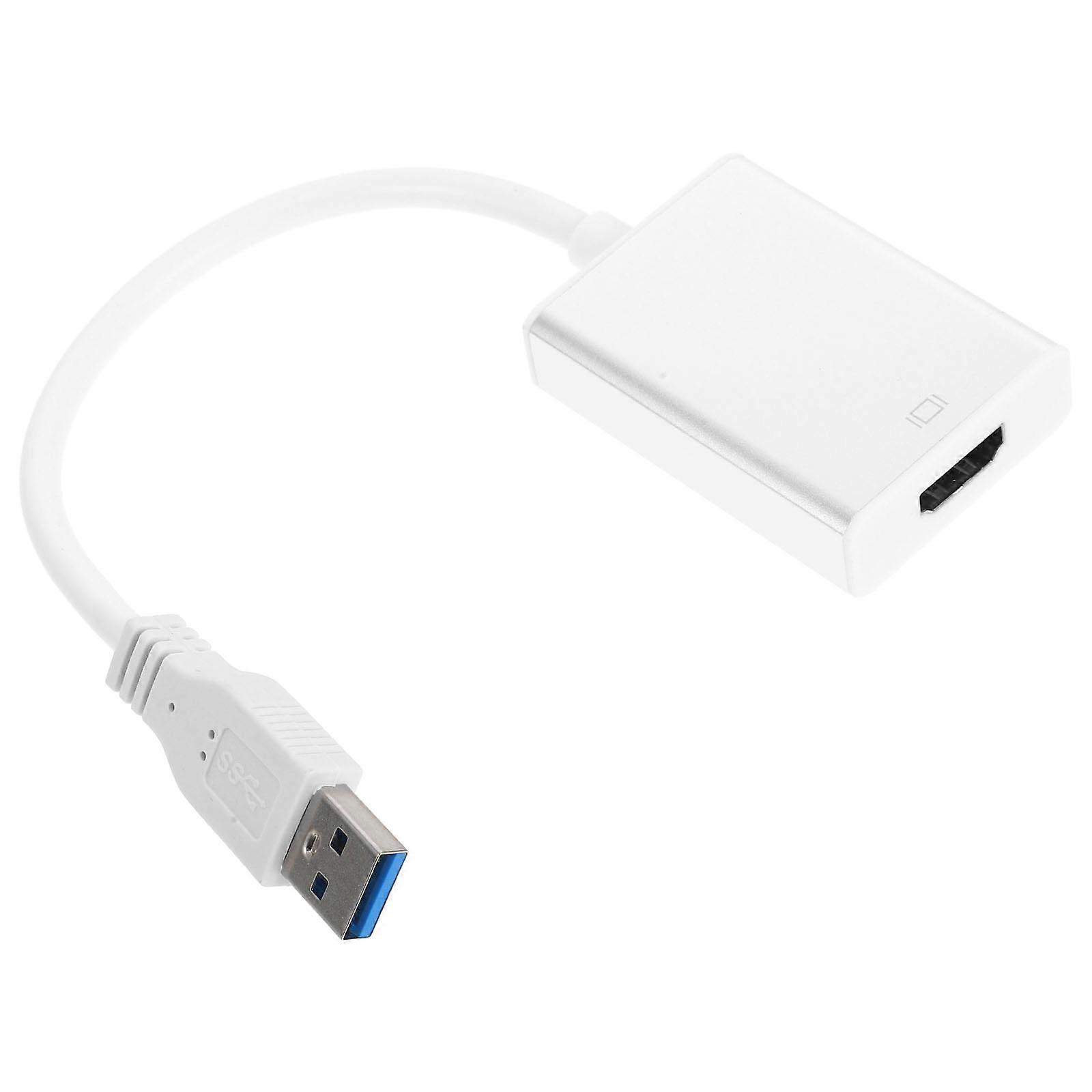 This USB3.0 to adapter cable allows you to transfer video from your device to HDTV or projector. Best use for entertainment sharing, play games, presentation or for work requirement. Use the adapter cable, can share the with your family or friends together on your big-screen devices. Features - Color: Silver. - Material: Plastic. - Size: 5.30X3.80X1.20cm/2.08X1.49X0.47in - Supports a desktop or laptop computer USB3.0 input. - Supports video output: signals, support 1.3b. - Supports USB3.0 backward compatibility. - Supports display functions: primary display, extend display, mirror display, screen rotation. - output resolution: support 480P / 576P / 720P / 1080P. - Supports computer operating system: XP / Vista / 7(32/64 bit) / 8(32/64 bit). - Supports multiple screens: system supports up to 6 screens, up to 4 screens. - Synchronous output audio and video to the HDTV, projector, slide projector devices. Very easy to operate. Specification - USB Input: USB3.0 - Backward Compatible with USB2.0 - Resolution: UP to 1080P/60HZ - Highest Speed: 5.0Gbps - Output No.: 5Volts P-P(TTL) - Cable Length: 150mm, standard USB3.0 cable - Operating Current: 300mA - Working Environment: 0 to 70 degree Celsius. - Operating temperature range: -15 to 55 degree Celsius. Package list: 1 x USB 3.0 to 1080P Video Cable Adapter Converter for PC Laptop HDTV TV