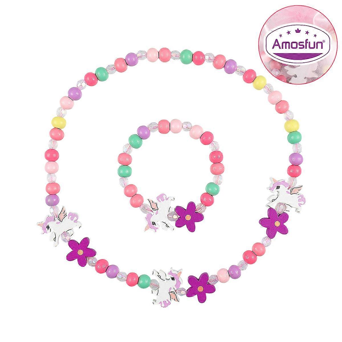 Unicorn Jewelry Wooden Beads Necklace for Kids Multi Colorful Gift