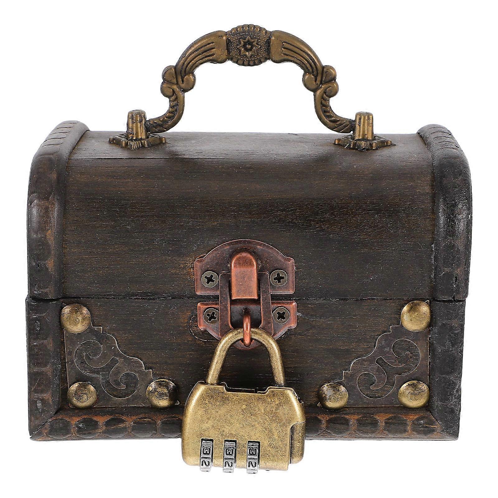Retro Wooden Treasure Chest with Lock for Home Storage 1Set