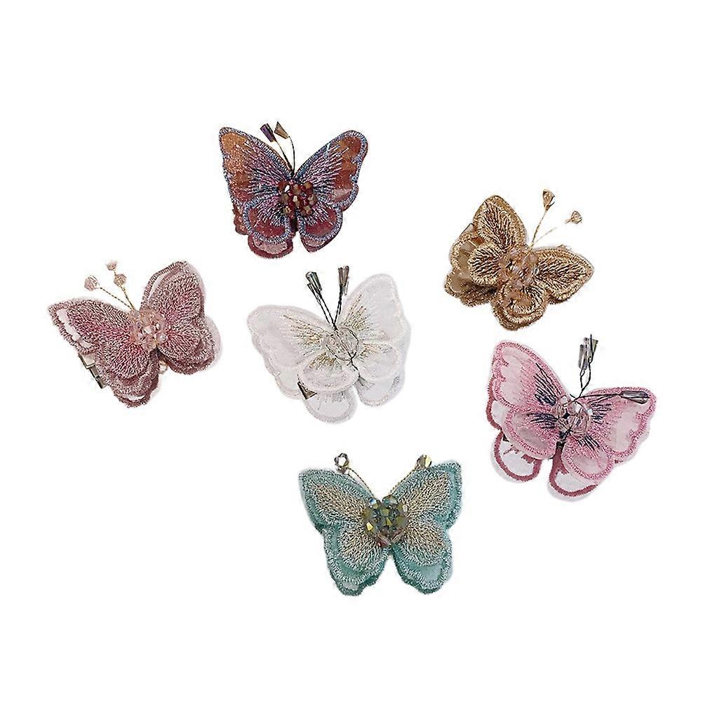 Embroidered Hairpins Butterfly Hair Clip Decorative for 6Pcs Assorted Color