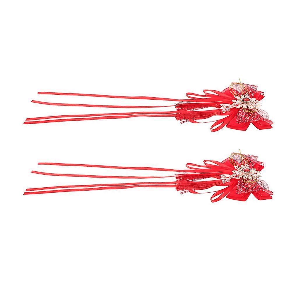 Red Bowknot Hair Clips for Decor 2Pcs Decorative Hair Accessories with Tassel