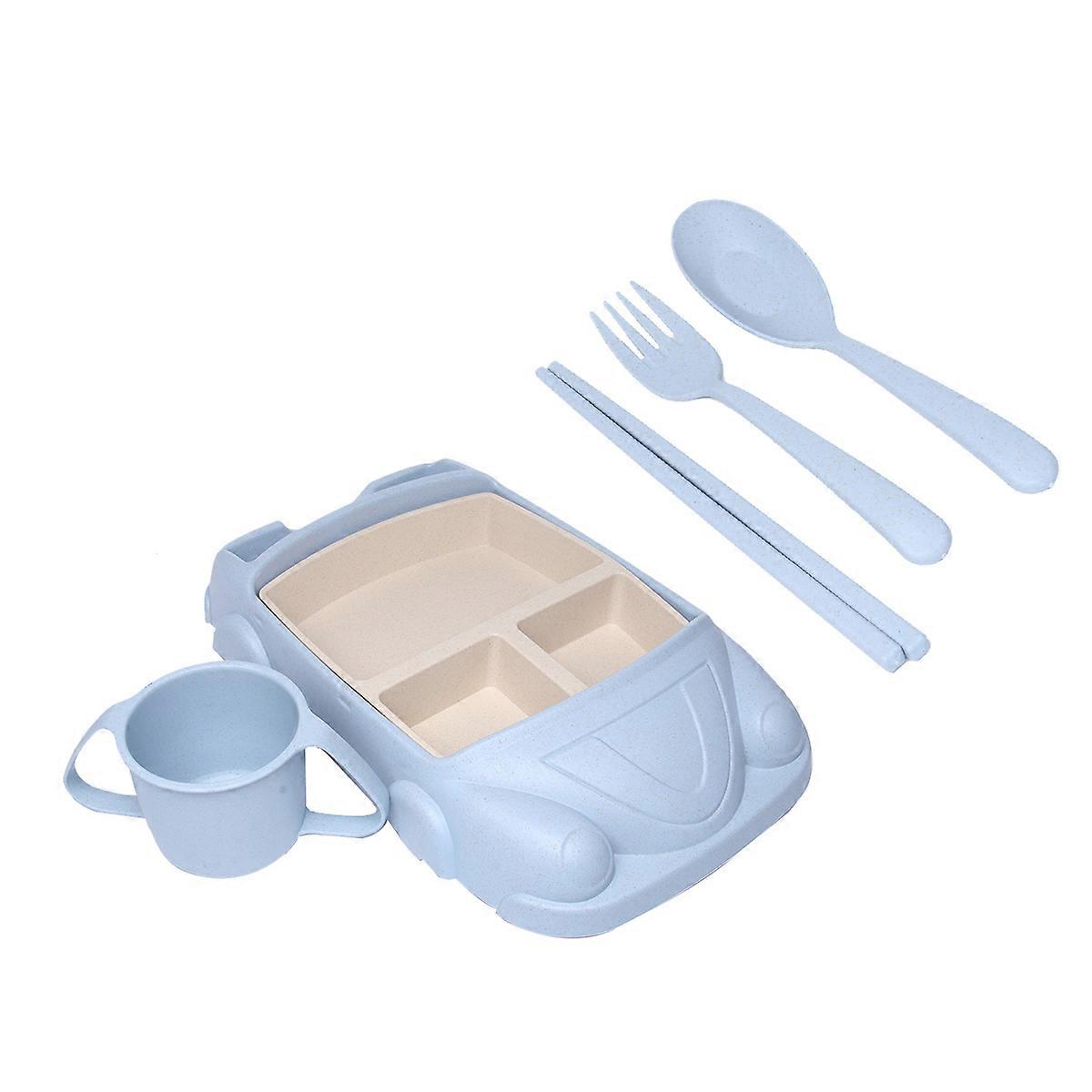 Blue Straw Cartoon Car Dinnerware Set for Kids Unbreakable