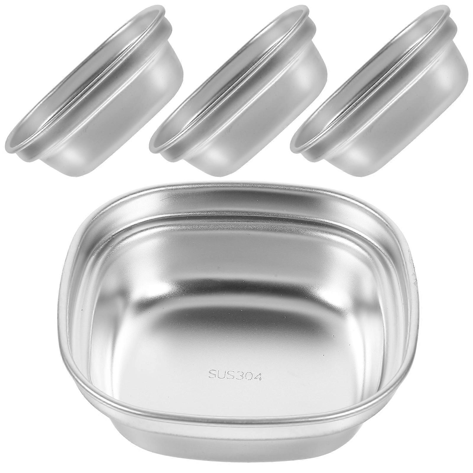 Stainless Steel Sauce Dish for Serving with 4Pcs Dipping Bowls in Silver