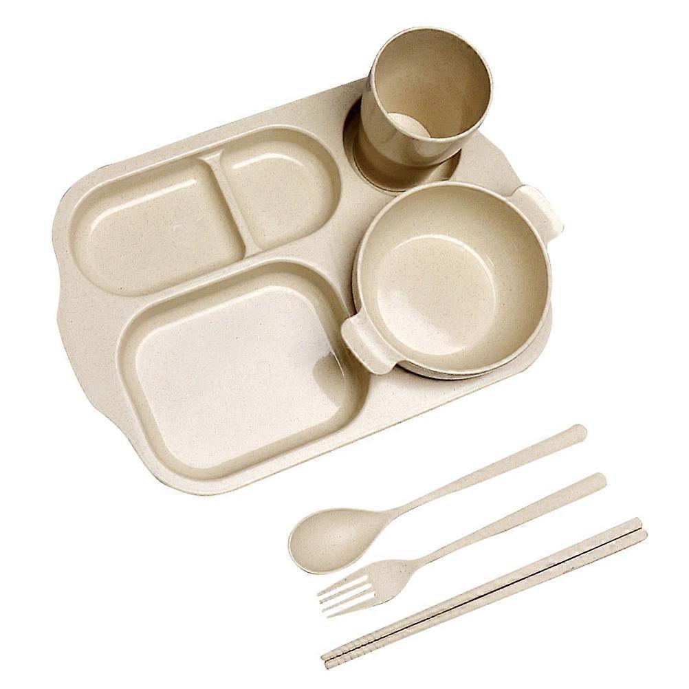 Straw Tableware Set for Daily Use 6Pcs Unbreakable Children Dinnerware Set Yellow