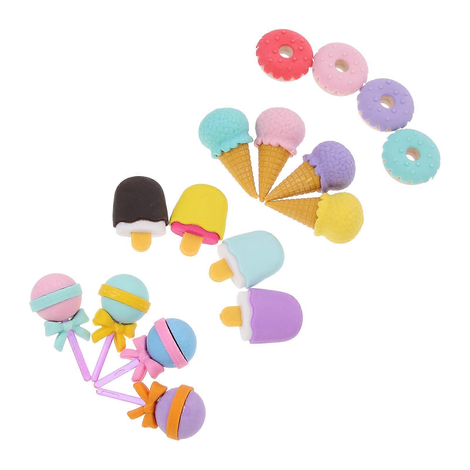 Lovely Dessert Erasers for Students 16Pcs Kids Pencil Erasers Cartoon Drawing Kit