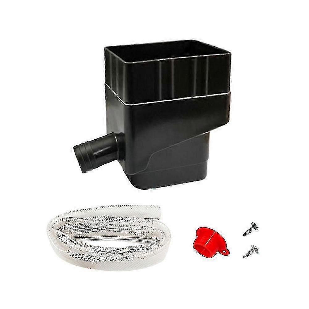 Rainwater harvesting downpipes, diverters, rainwater harvesting systems, yard drainage ditches (black)