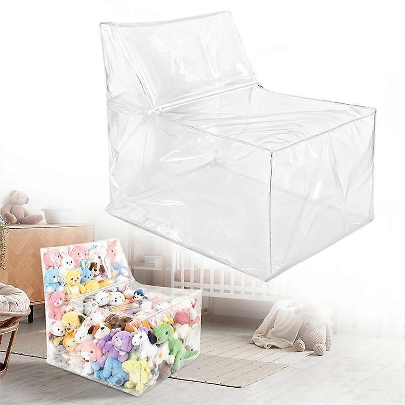 Kids 2in1 Storage Stool Chair Thickened PVC Toy Organizer Bag Transparent Seat Box For Home Bedroom Playroom