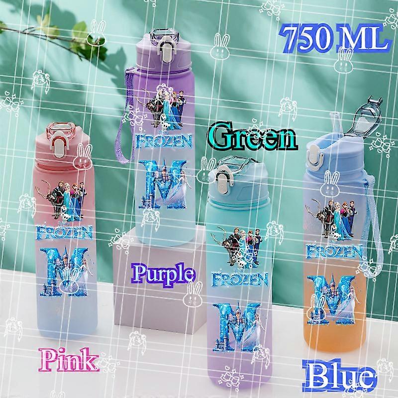 750ML Letter A-Z Print Frozen Water Bottle Large Capacity Drinking Portable Cartoon Anime Outdoor Sport Water Cup Elsa Anna Gift
