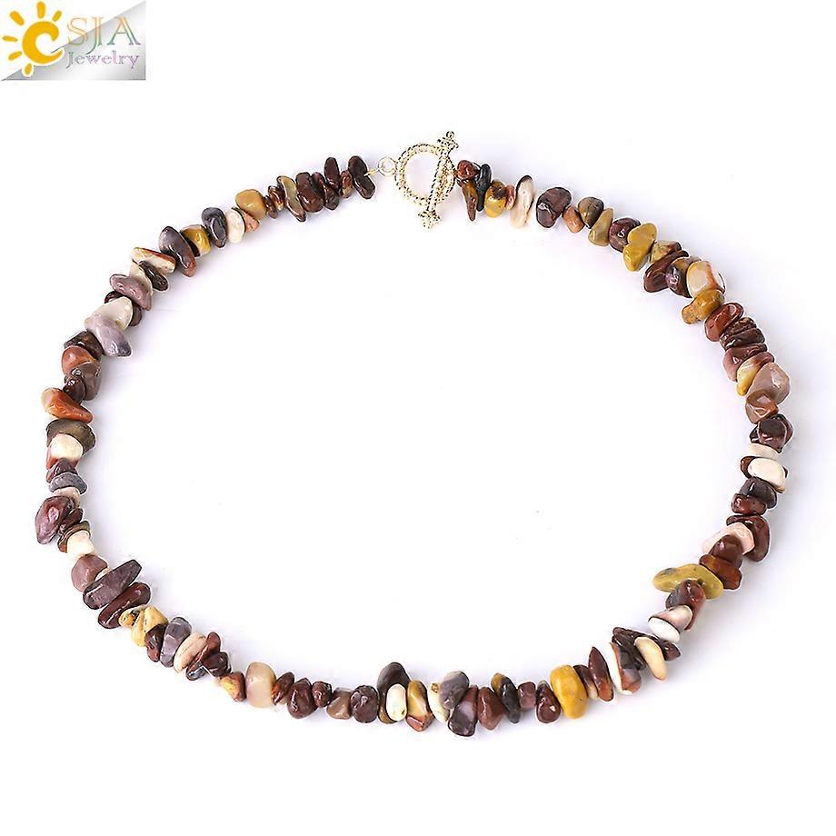 CSJA Natural Stone Crystal Necklace Bead Choker forWomen Healing Naural Chip Stone Sunstone Citrine Neck Necklaces Chain H153