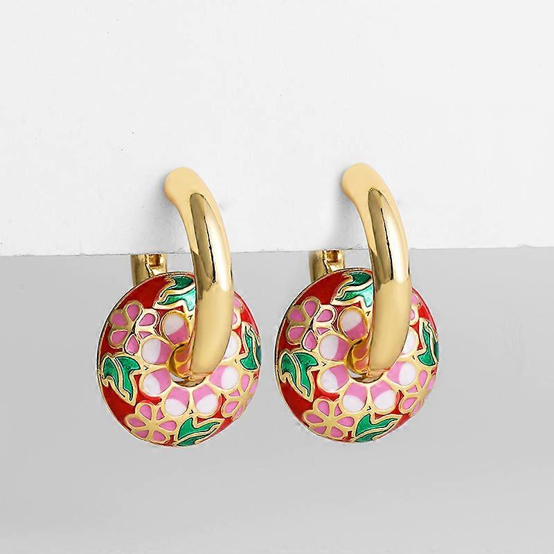 Colorful Flower Round Circle Donuts Hoop Earrings for Women Classic Gold Color Stainless Steel Ear Huggie Hoops Fashion Jewelry