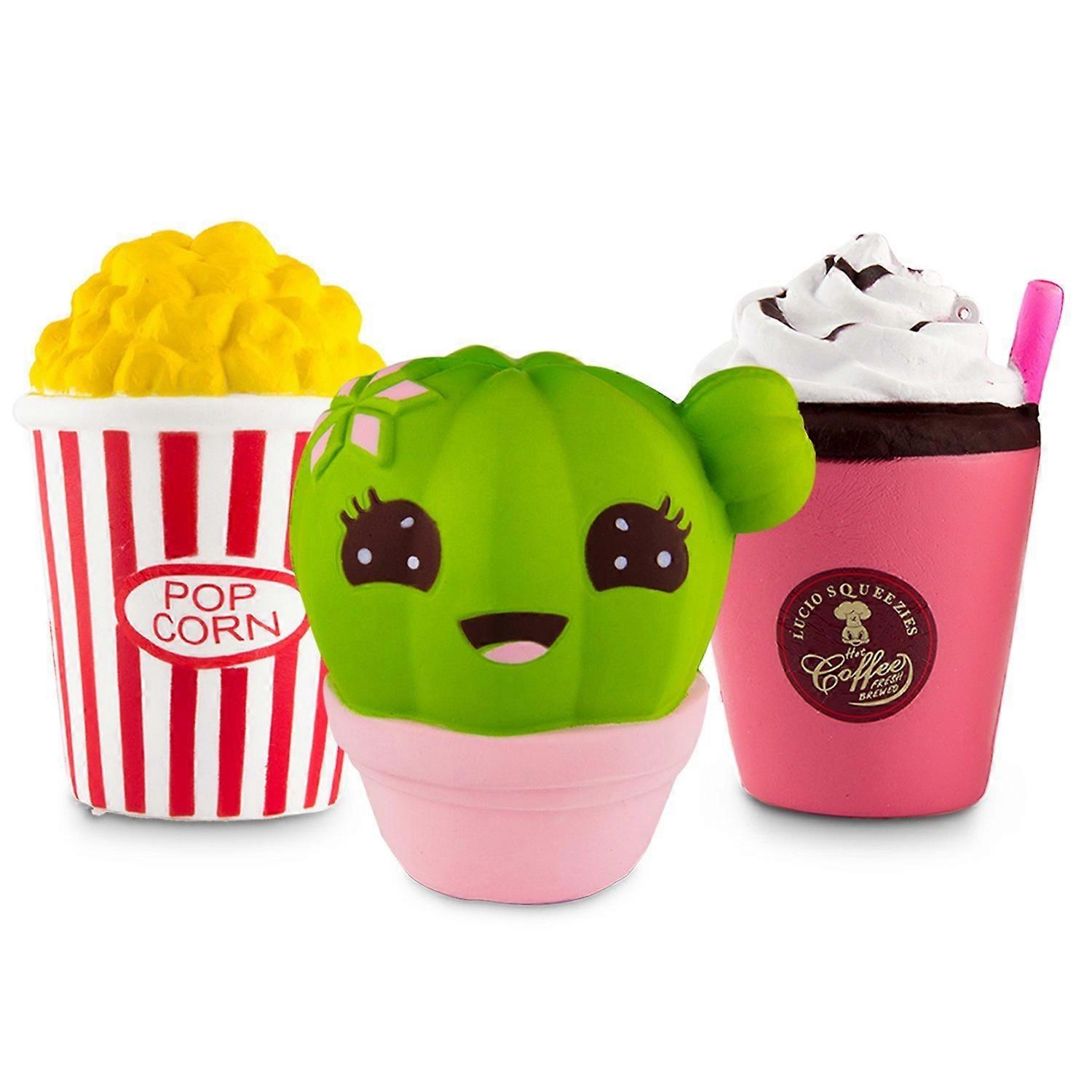 Squishy Toys Set Slow Rising Cream Scented Kawaii Pack Cactus Popcorn Drink Stress Relief 3pcs