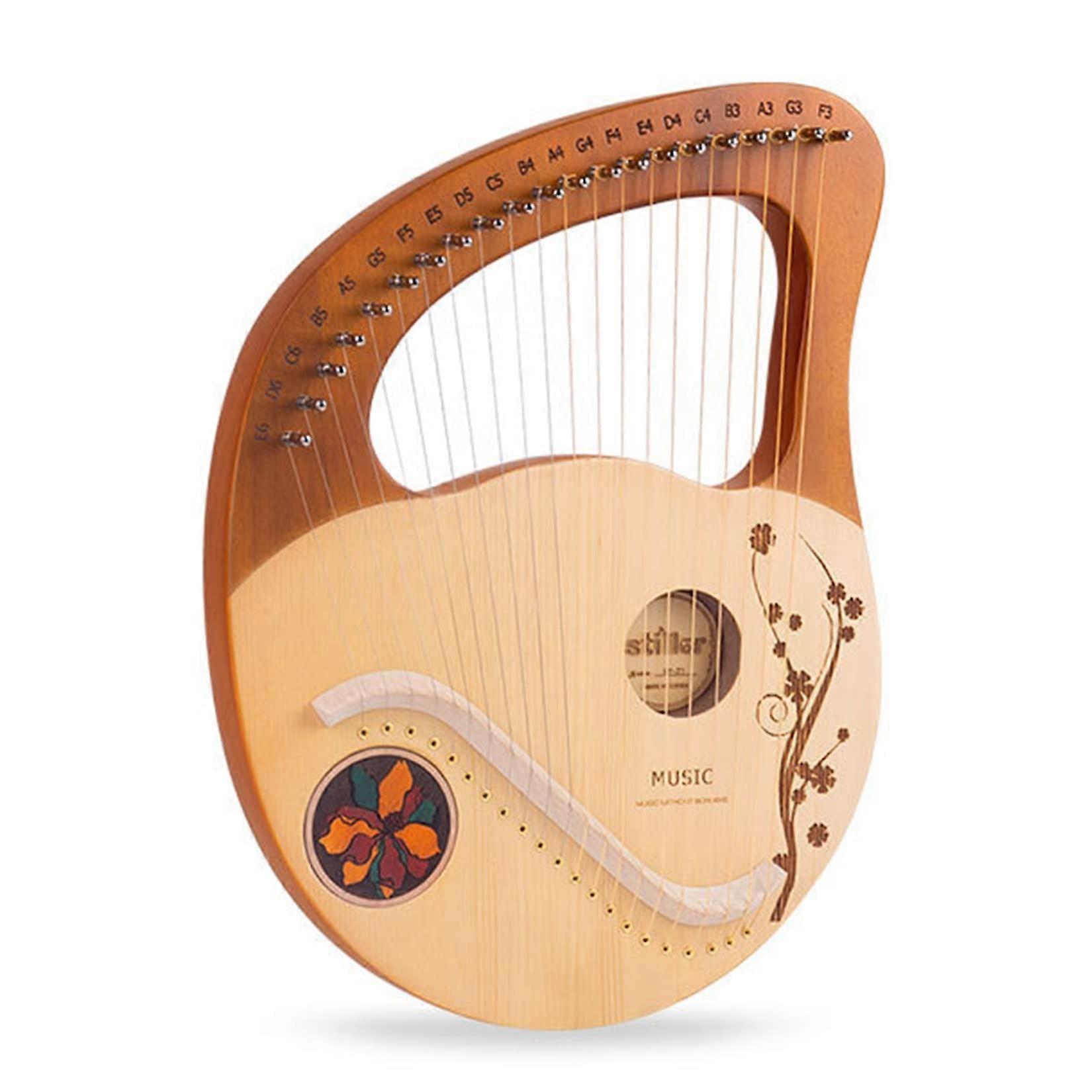 21 String Lyre Harp Solid Mahogany Body Metal Strings Clear Balanced Tone for Beginners