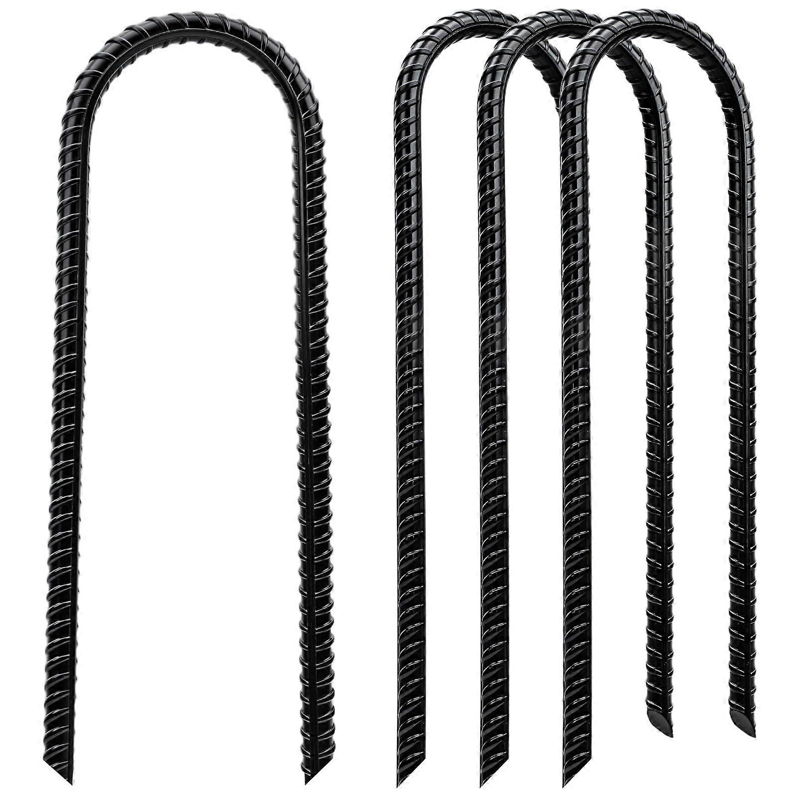 Heavy Duty Trampoline Anchors, 12 Inch U Shaped Galvanized Steel Ground Stakes, 4 Pack Black