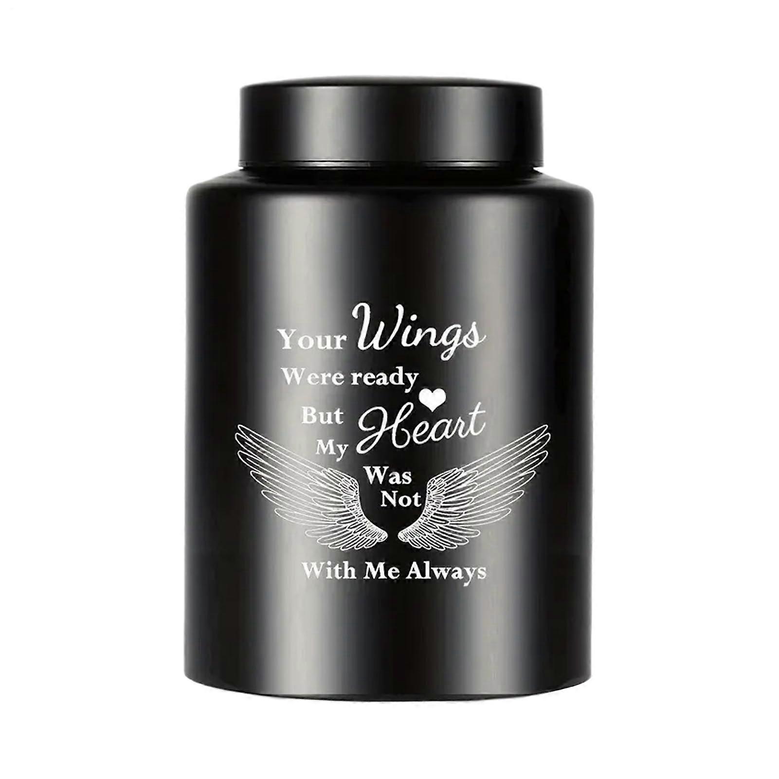 Classic design with angel wings blends with any space, offering beauty and practical function. Longterm preservation solution Engineered to resist harsh conditions, with advanced sealing that blocks air and moisture for dependable longterm preservation of ashes. Emotional connection and remembrance Fosters a tangible emotional bond and enduring presence, making it a thoughtful gift for home display or memorial placement and honoring the memory of a loyal companion. Durable and waterproof Made from stainless steel for sturdy waterproof performance, protecting contents and enabling lasting use in varied environments. Key attributes Material: stainless steel Function: cremation urn designed for longterm preservation and respectful memorial display Performance: airtight and moistureblocking seal to help preserve ashes Design: classic silhouette with angel wings for a tasteful, timeless look Use scenarios Home display: place on a mantel, shelf, or dedicated memorial corner for daily remembrance. Memorial setting: suitable for placement in a memorial space, niche, or cemetery shrine to honor a companion. Indoor and sheltered outdoor use: designed to withstand varied environments, allowing placement in indoor rooms or sheltered outdoor memorial areas.