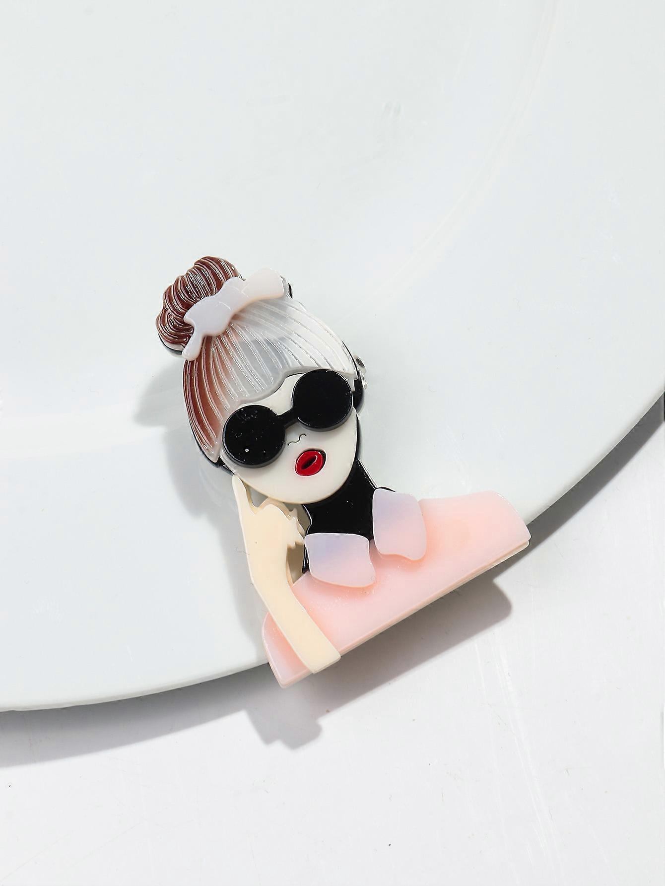 Fashion Red Pink Beauty Girl Acrylic Brooches for Women Cartoon Glasses Lady Brooch Badge Lapel Pins Casual Jewelry Accessories