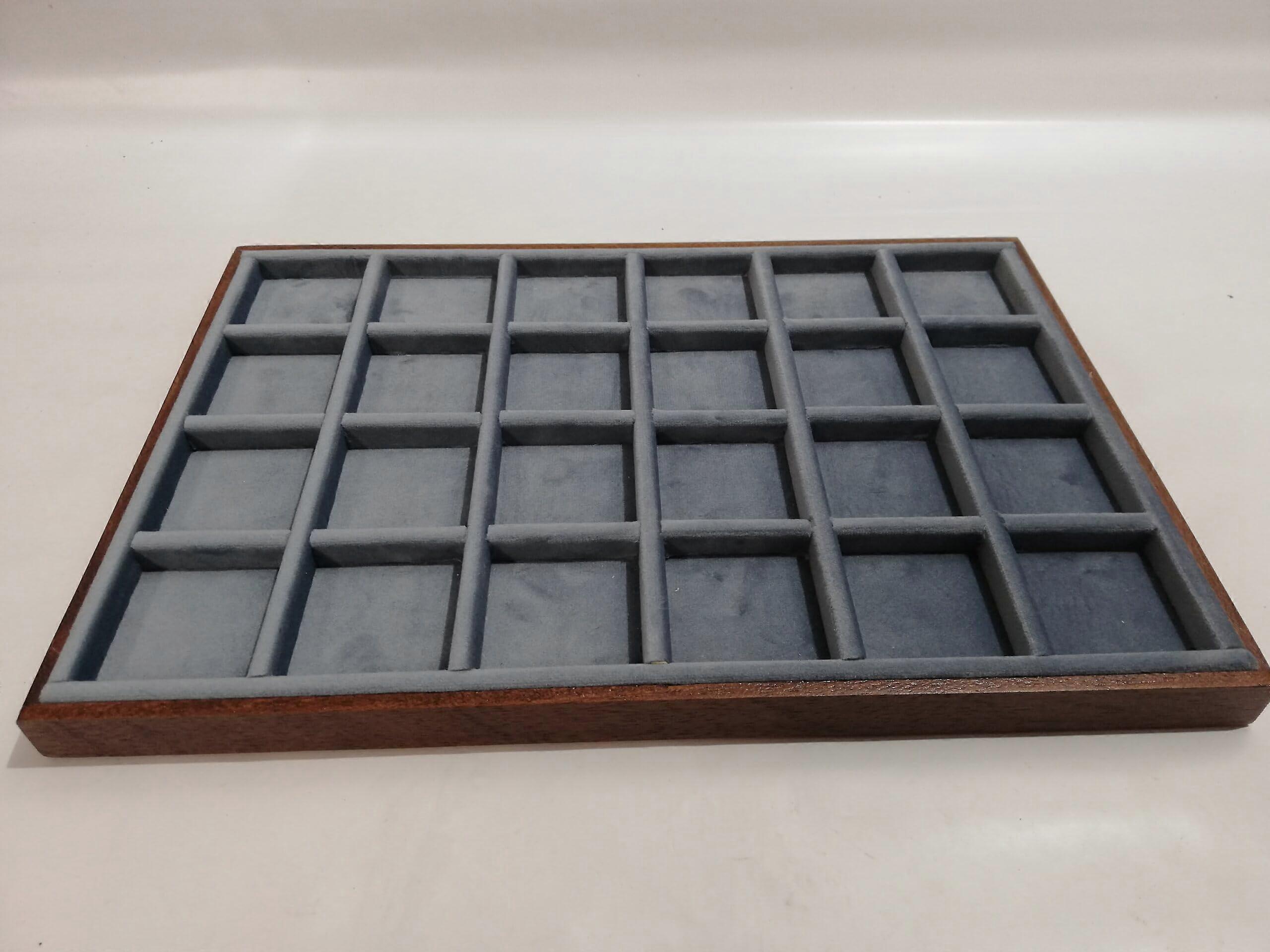 Coin Display Tray with Scratch Blue Italian Velvet and Wooden Base for Jewelry and Medals