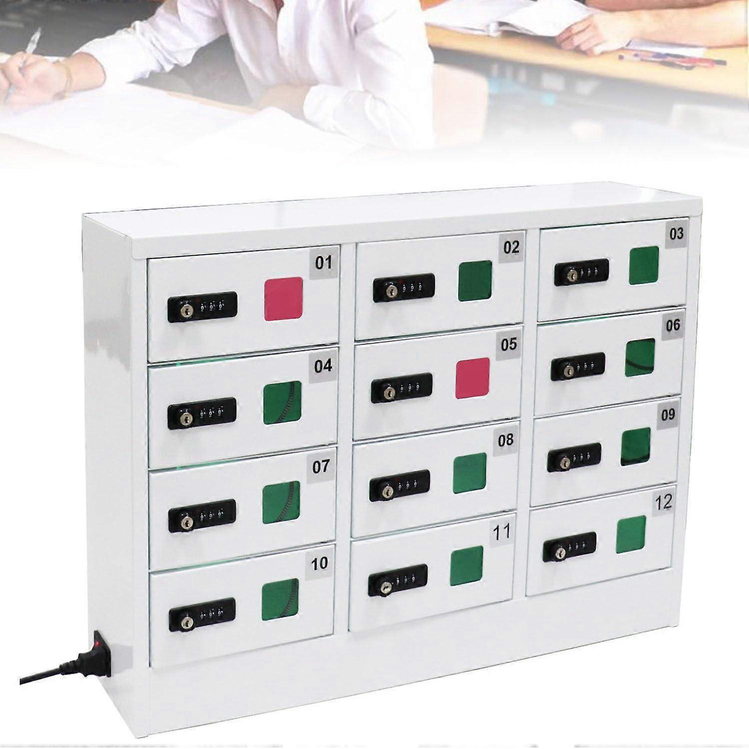 12 Slot Phone Charging Locker with Fast QC3.0, Dual Unlock, Steel Cabinet for Office and Gym