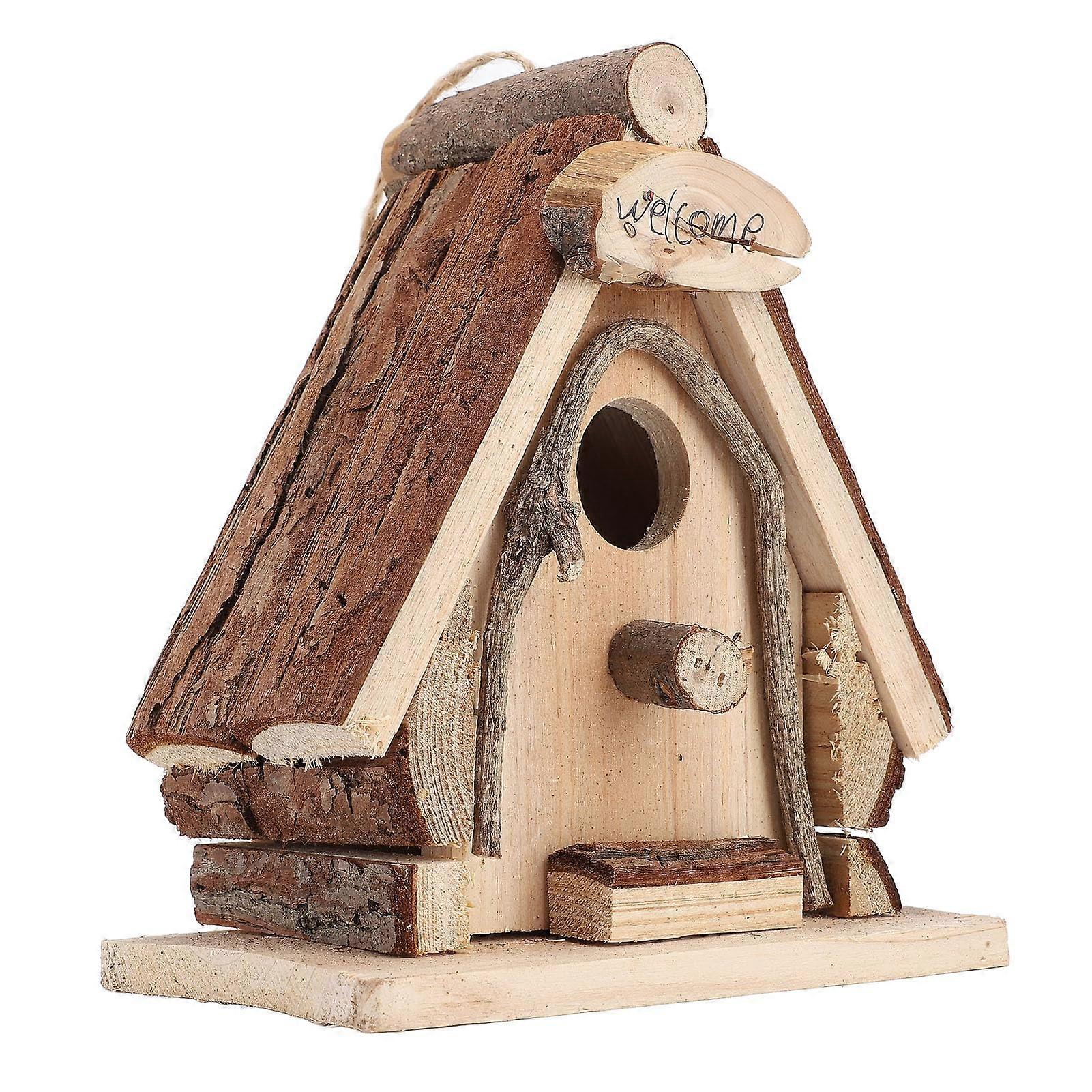 Rustic Wooden Birdhouse with Rope for Garden Patio or Balcony Hanging Outdoor Bird Shelter