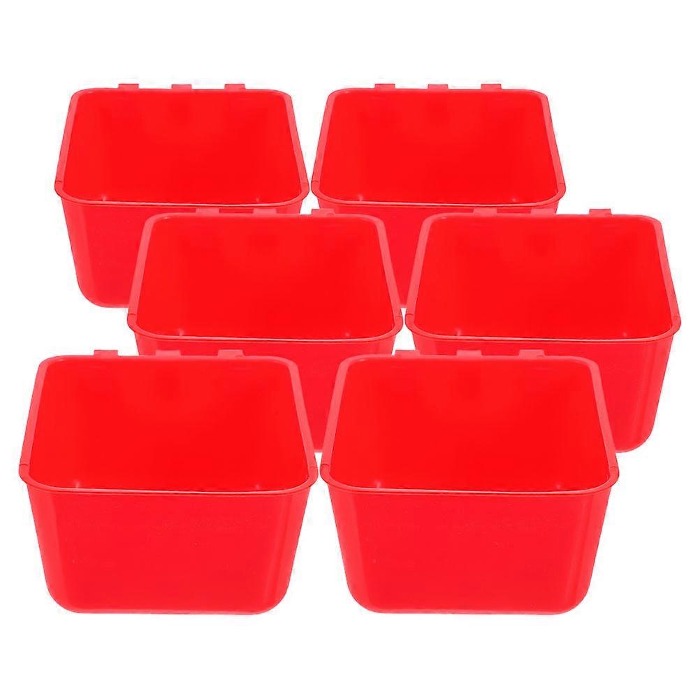 Pet Feeder Bird Cage Hanging Feeding Cups for Rabbits 6Pcs Red Plastic