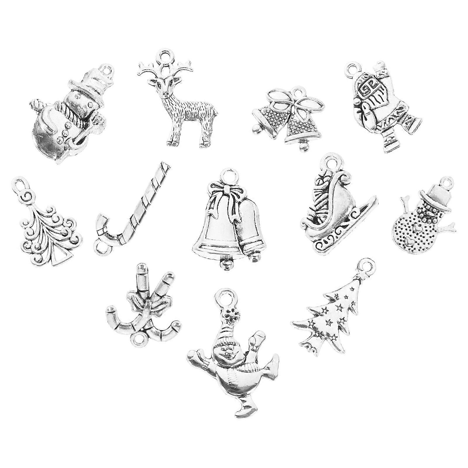 Christmas Jewelry Charms Alloy Christmas Pendants for DIY Crafts 12Pcs Silver