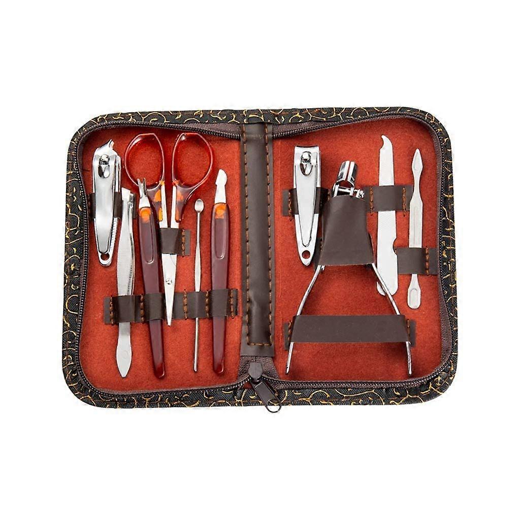 Manicure Set Pedicure Kit 10Pcs with Ergonomic Fish Belly Grip Nail Clippers Travel Grooming Case
