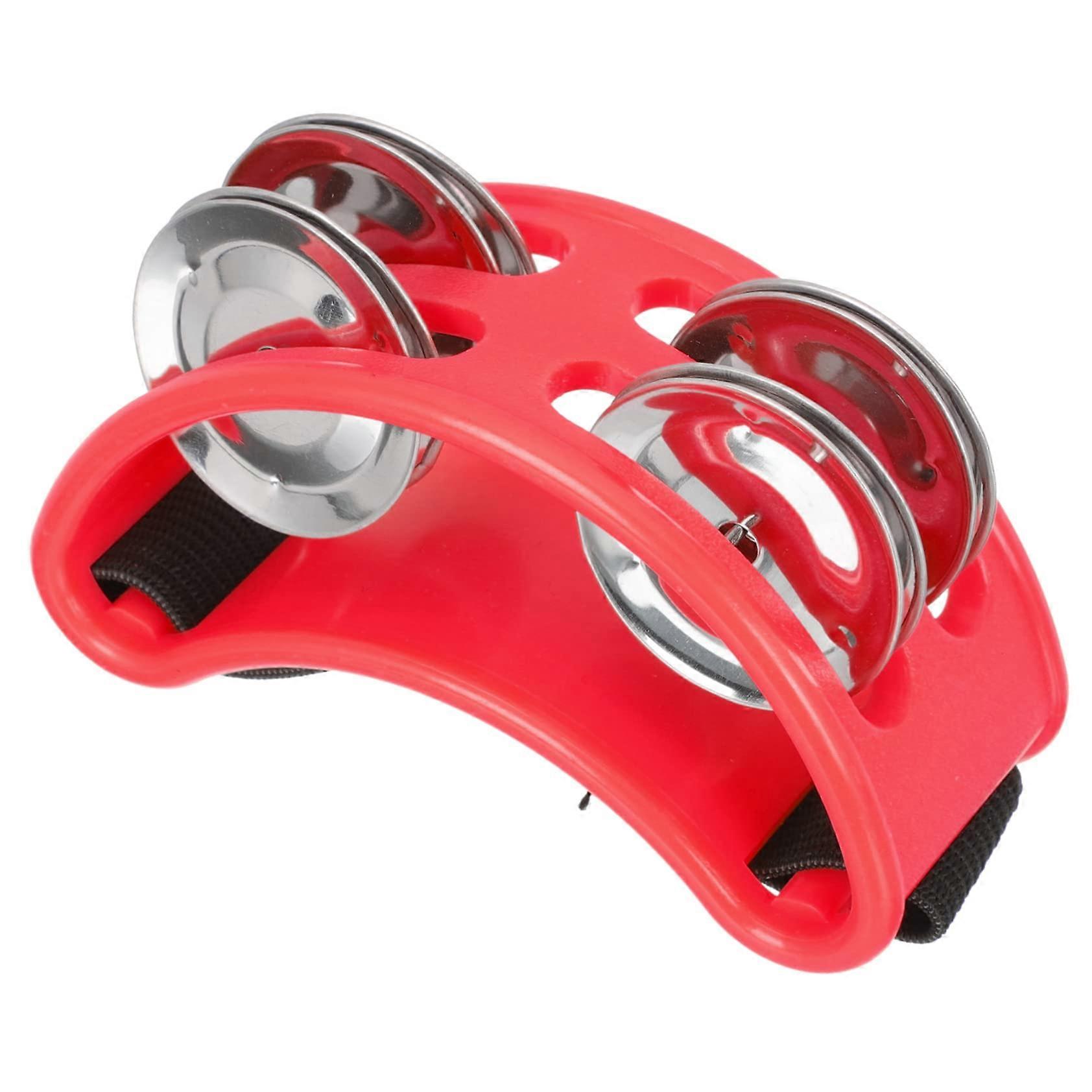 Red Foot Tambourine Percussion Instrument with Bright Jingle Sound for Stage Karaoke and Games