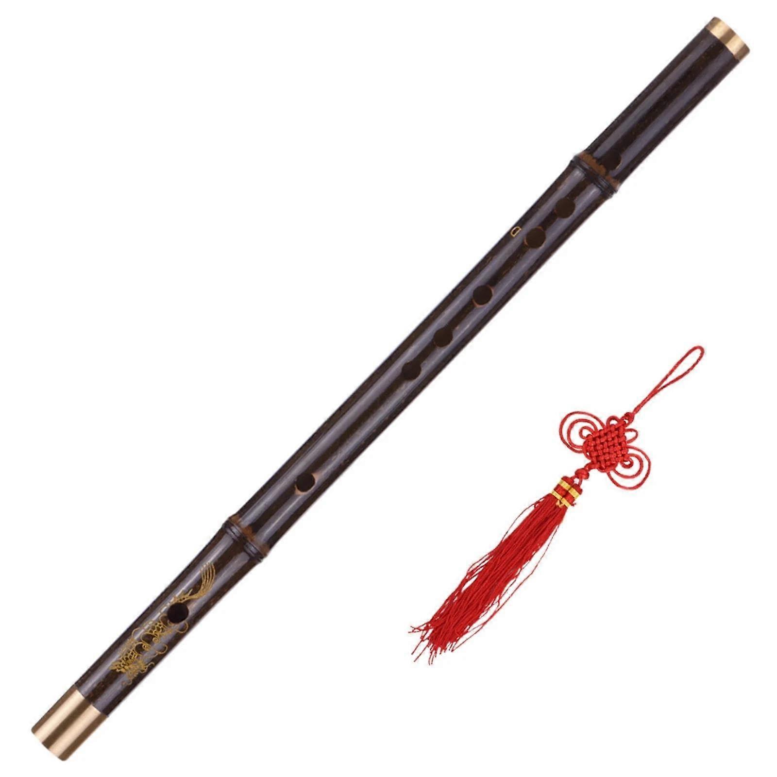 Bamboo Flute Key C Handmade Black Woodwind with Clear Tone and Copper Reinforced Ends
