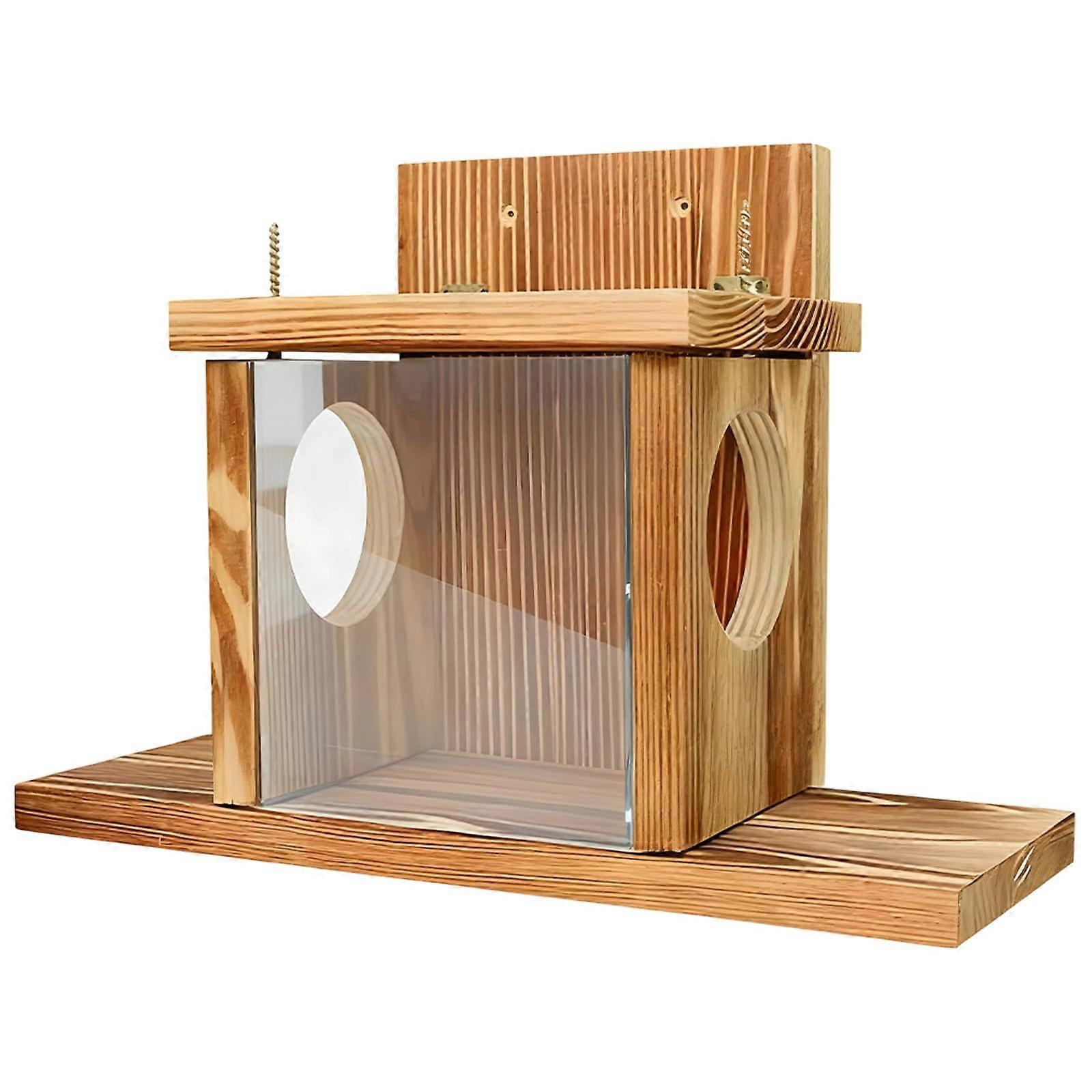 Wooden Squirrel Feeder with Roof, Large Capacity Dual Openings for Outdoor Yard