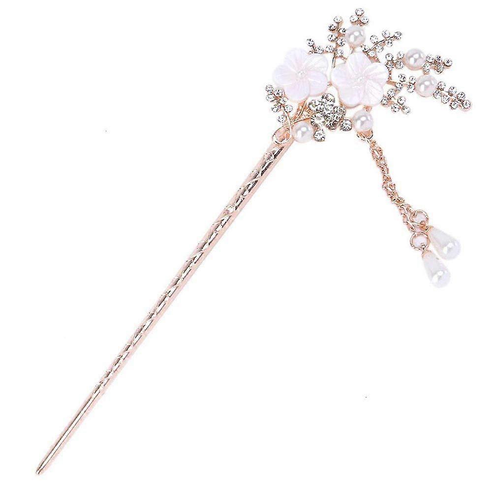 Vintage Chinese Hair Stick with Rhinestone Pearl Flower, Elegant Bridal Chignon Hair Pin