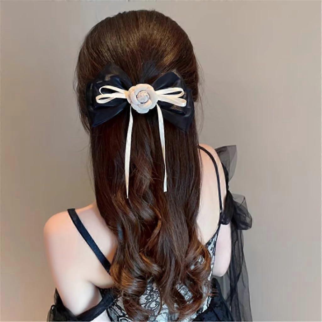 Black Camellia Flower Ribbon Hair Clips for Women with Secure Nonslip Hold Elegant Animal Design