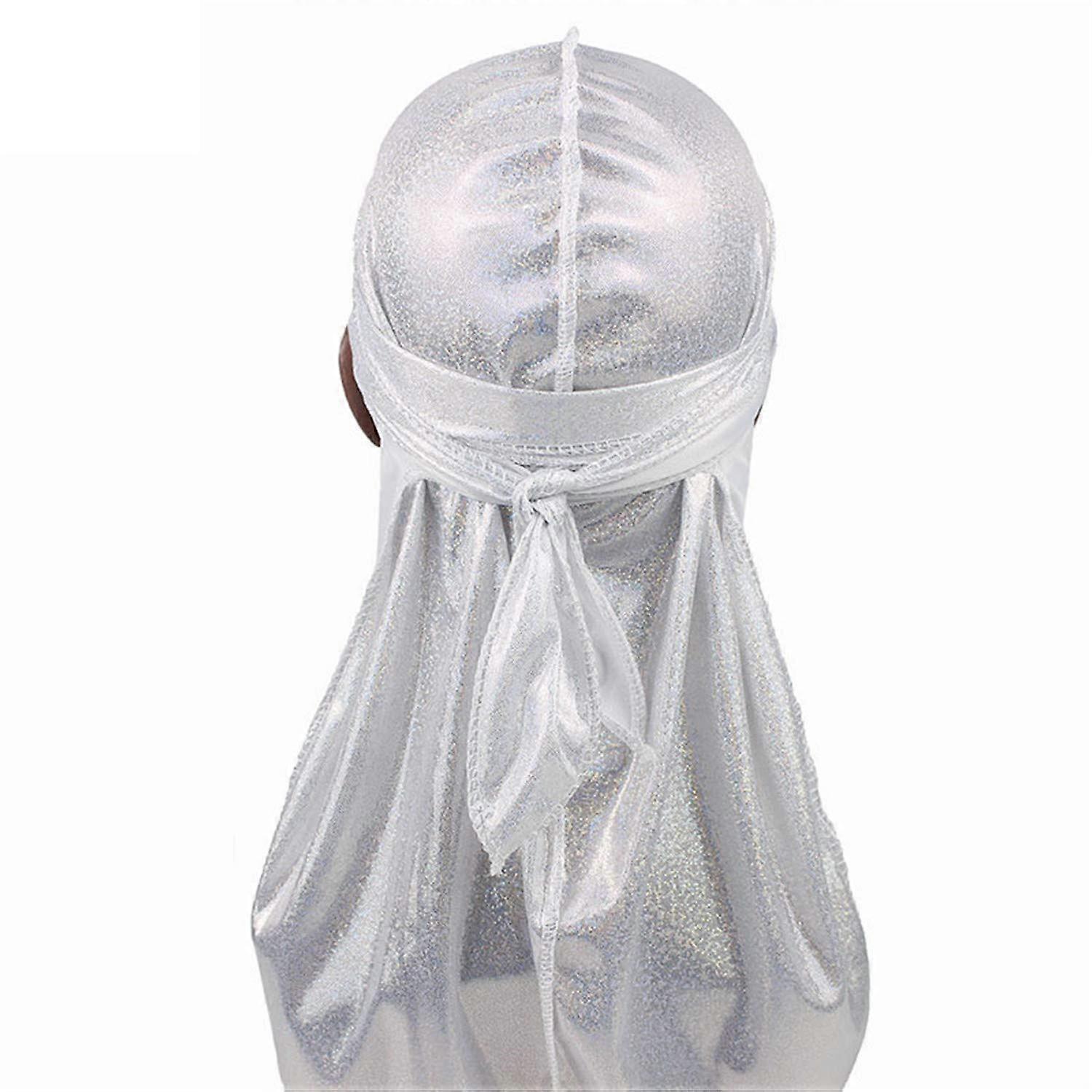 Men's Silk Durag White Shiny Satin Headwear Smooth Surface Breathable Fit Hair Protection