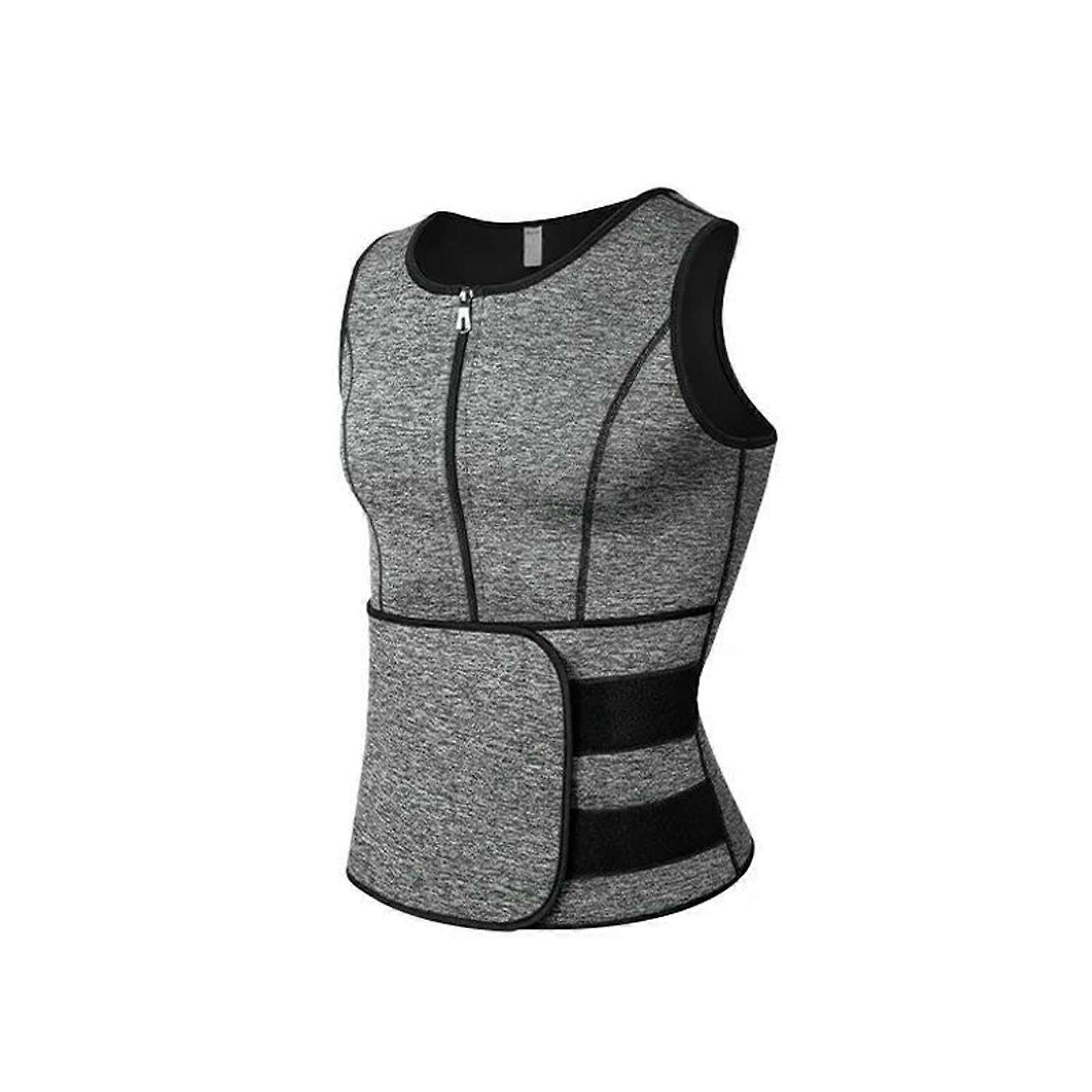 Men Sauna Vest Neoprene Waist Trainer with Zipper for Weight Loss Body Shaper Workout Shirt Grey L