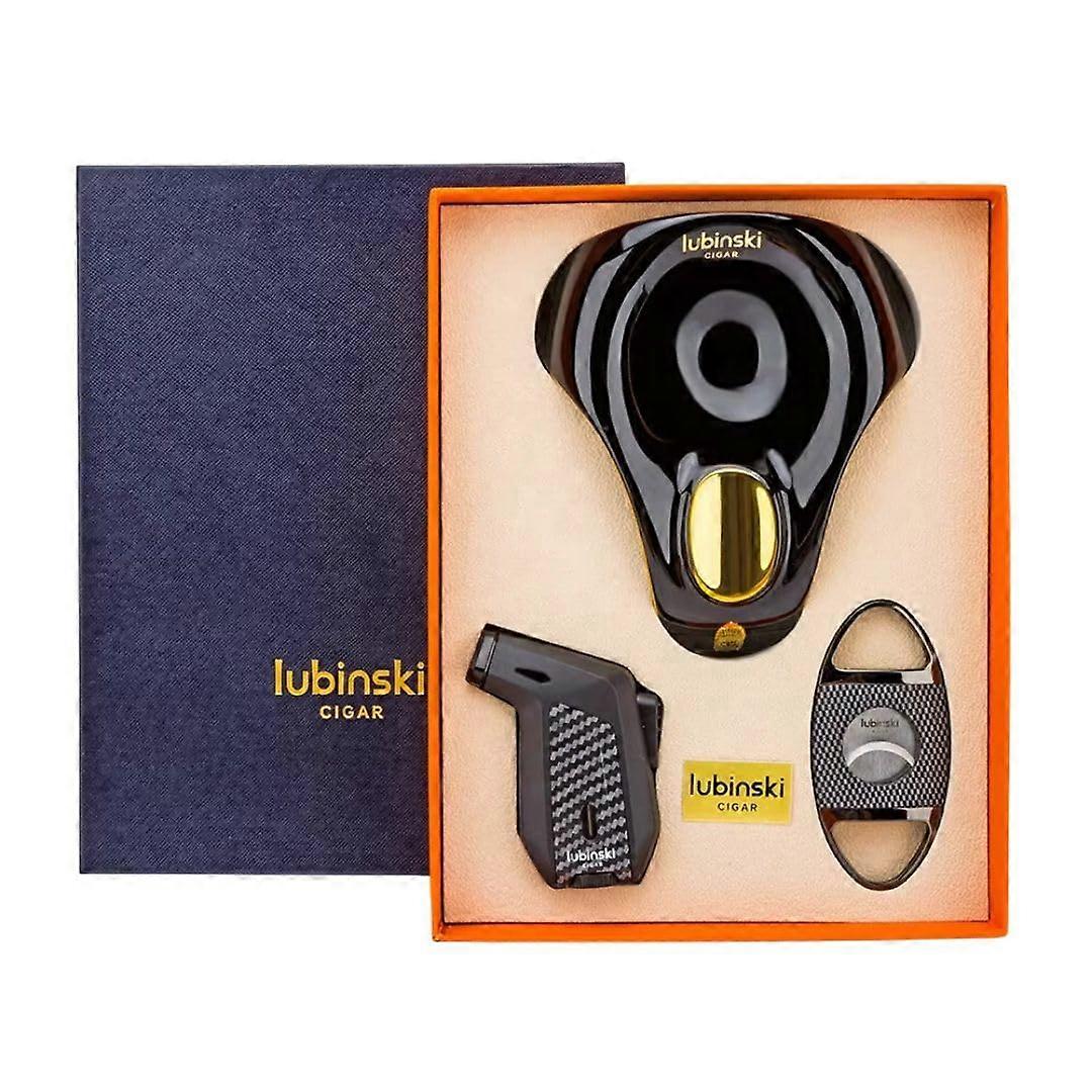 Cigar Gift Set with Windproof Lighter Cutter and Ashtray, Elegant Black and Gold Accessories