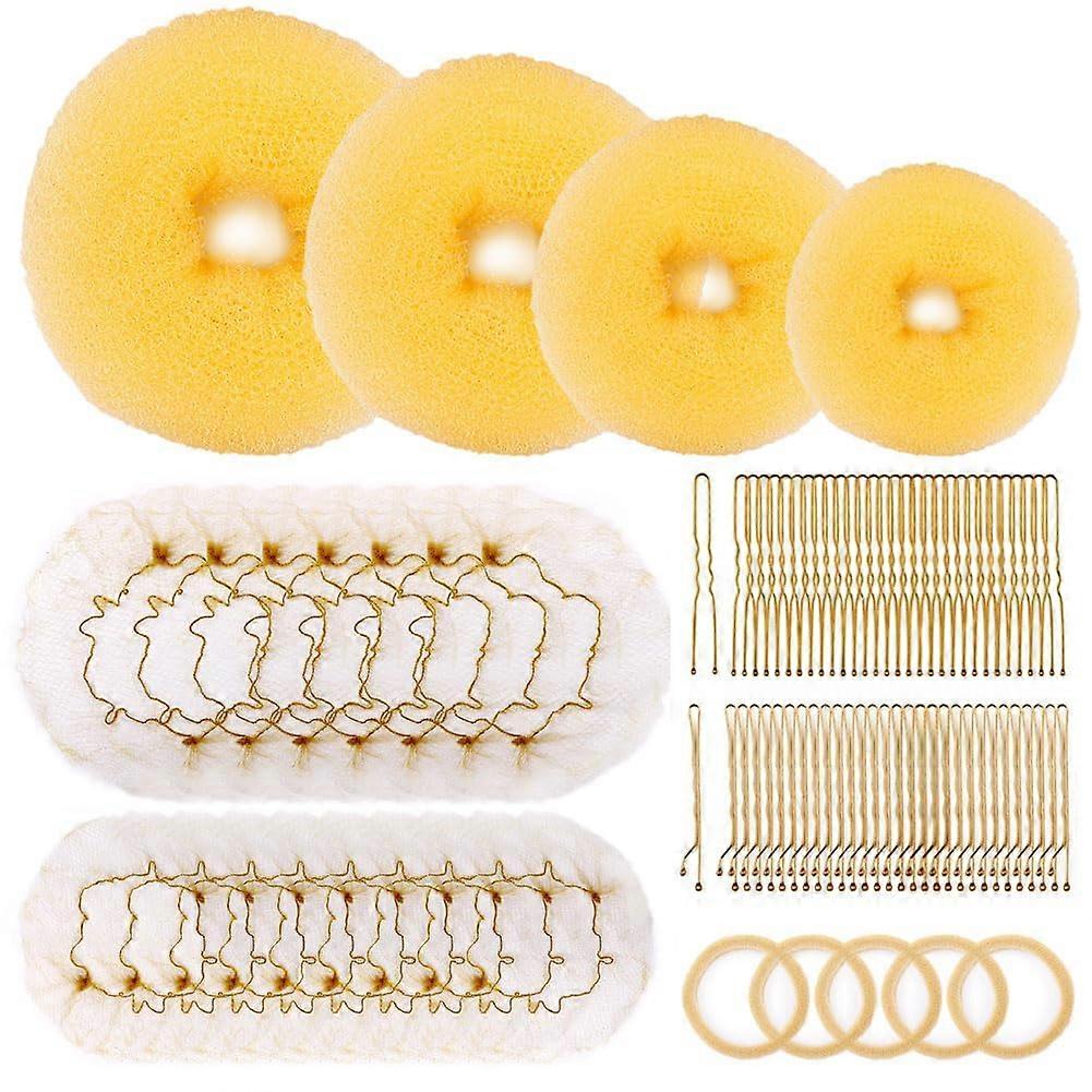 Blonde Hair Bun Maker Set for Women and Girls, Complete Bun Styling Kit with Multiple Donut Sizes and Hair Nets