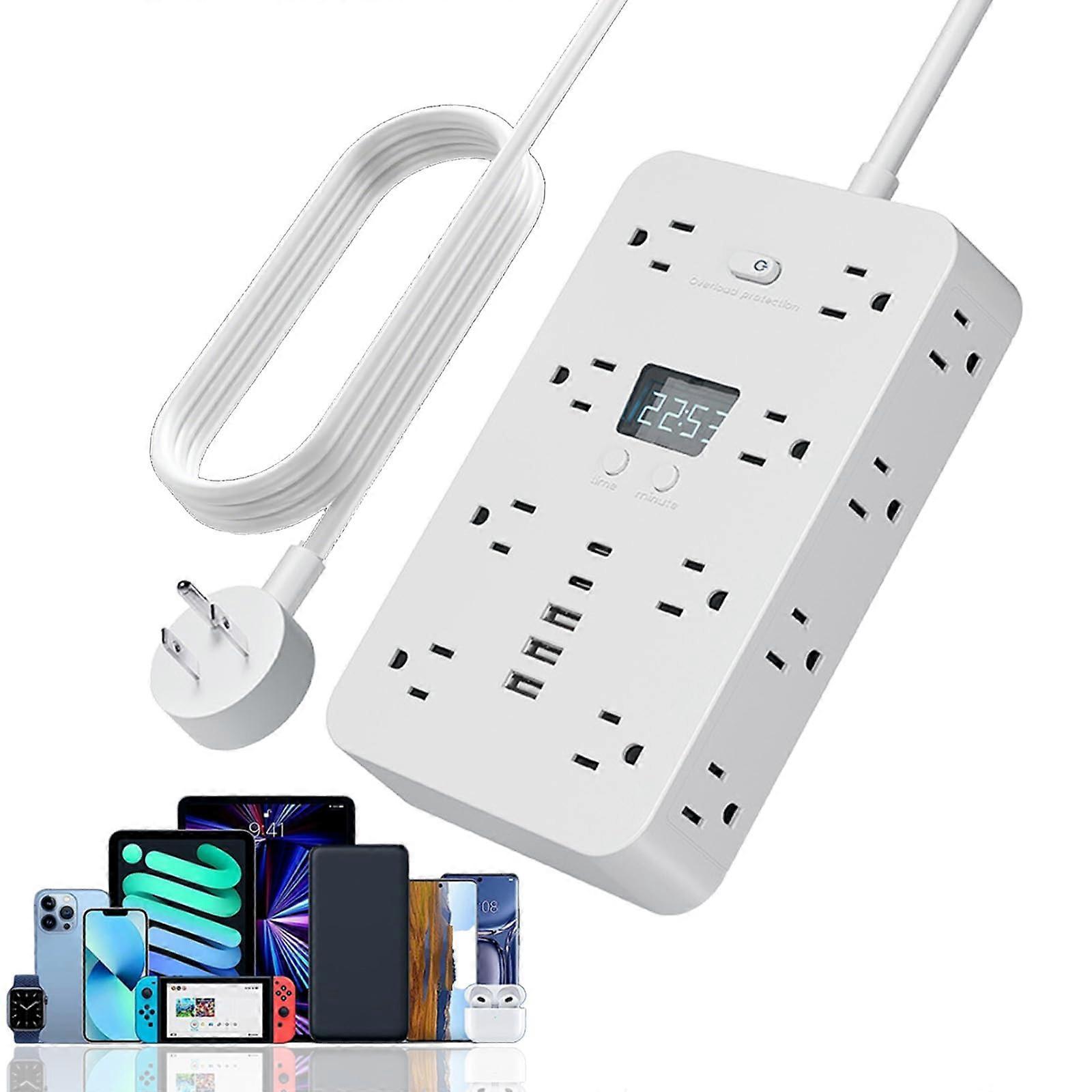 Power Strip with USB C and 16 AC Outlets, 1700J Surge Protector, 21 Ports, Flat Plug Wall Mount Extension Cord for Home Office, 4.9ft White