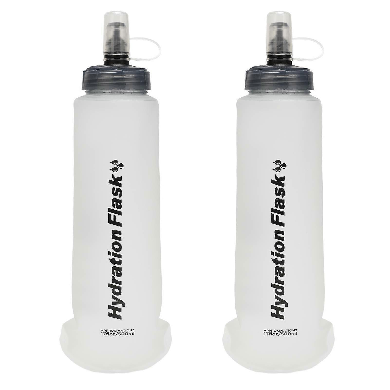 Soft Flask Water Bottle 500ml Leakproof TPU for Running Hiking Cycling White 2 Pack