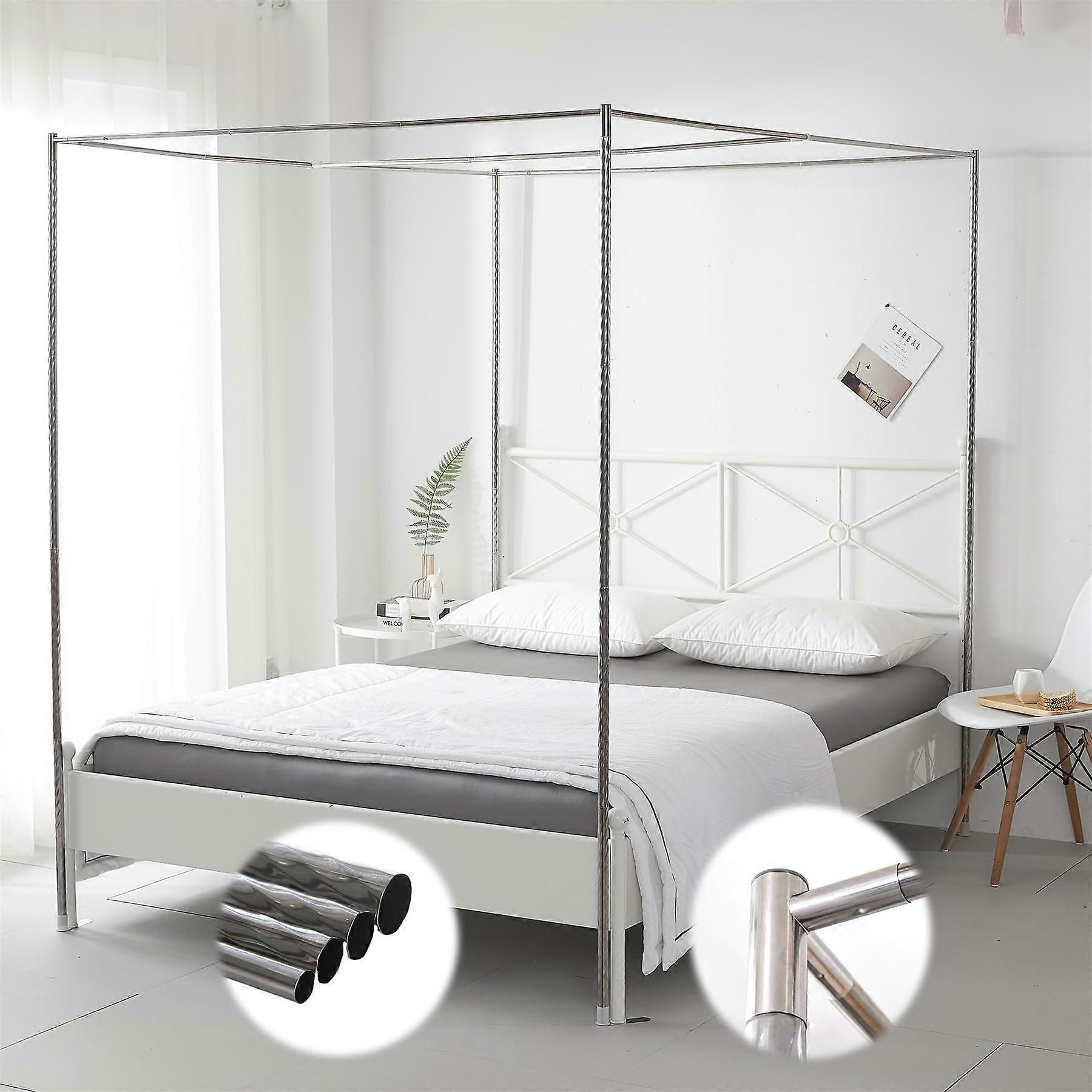 Stainless Steel Canopy Bed Frame with Retractable Poles, Full Queen King Size Four Poster Design