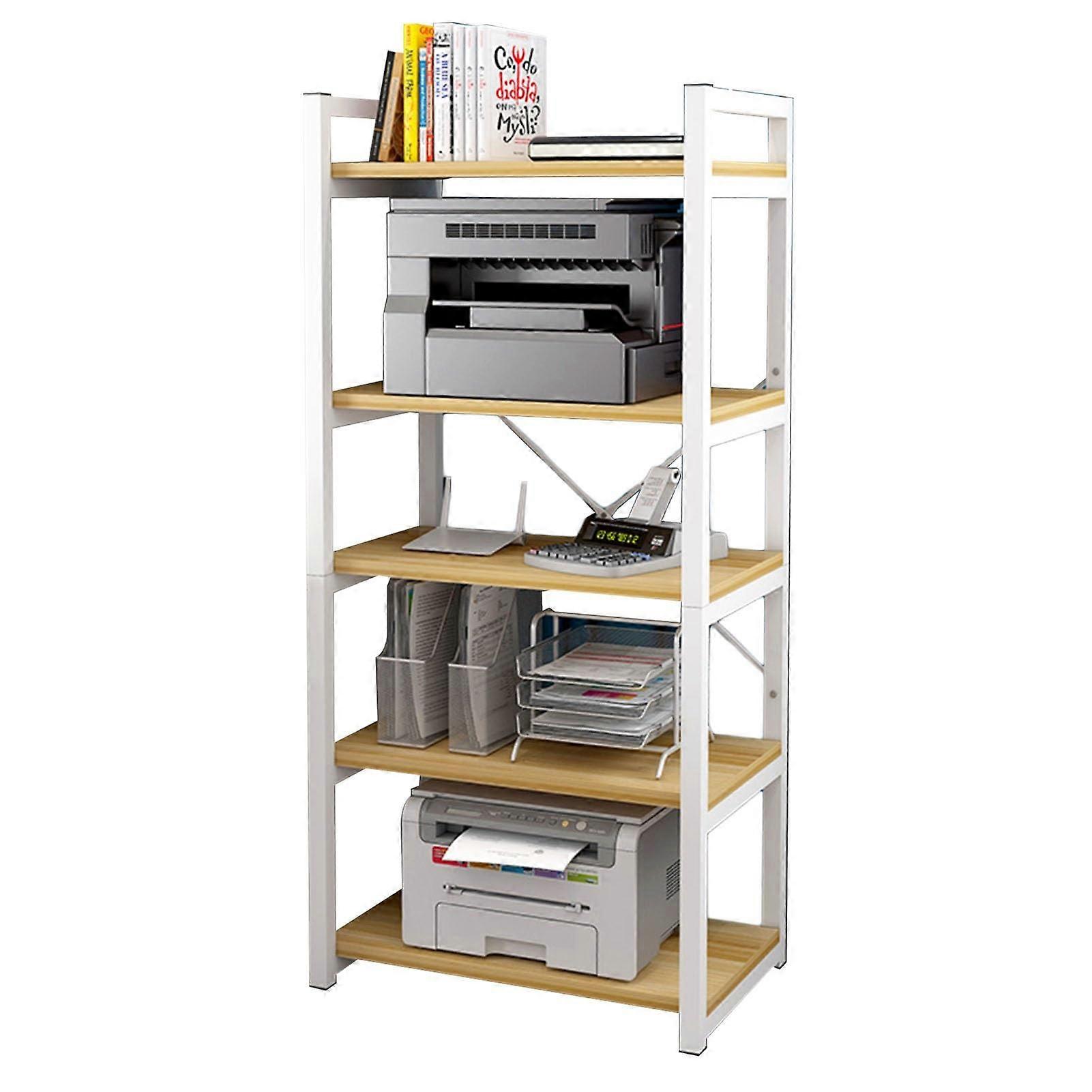 5 Tier Printer Stand with Storage Shelves, Metal and Wood Office Storage Rack for Home, Style 3