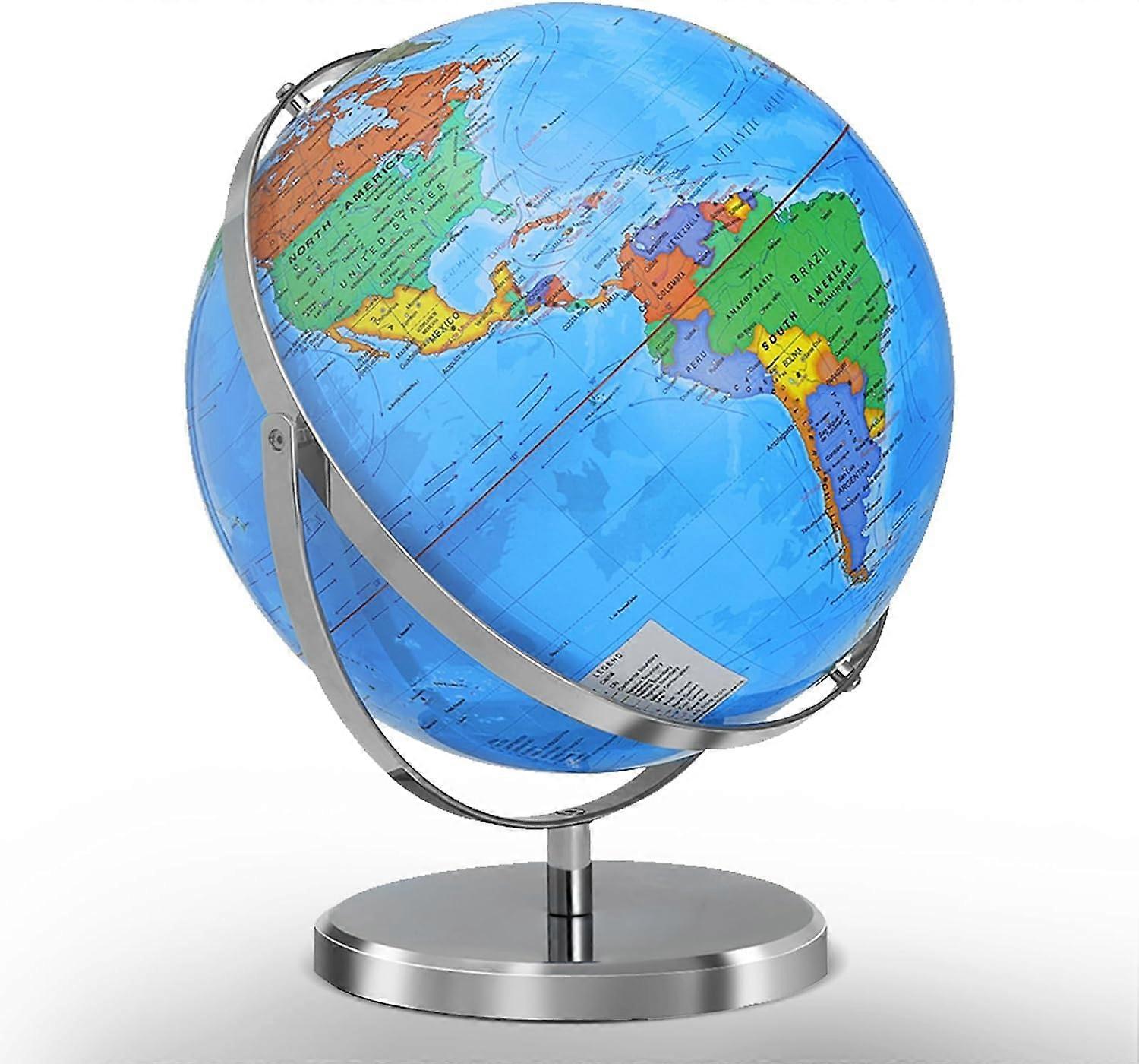 13 Inch Rotating World Globe with Stainless Steel Stand, 720° Axis, Educational for School Home Office