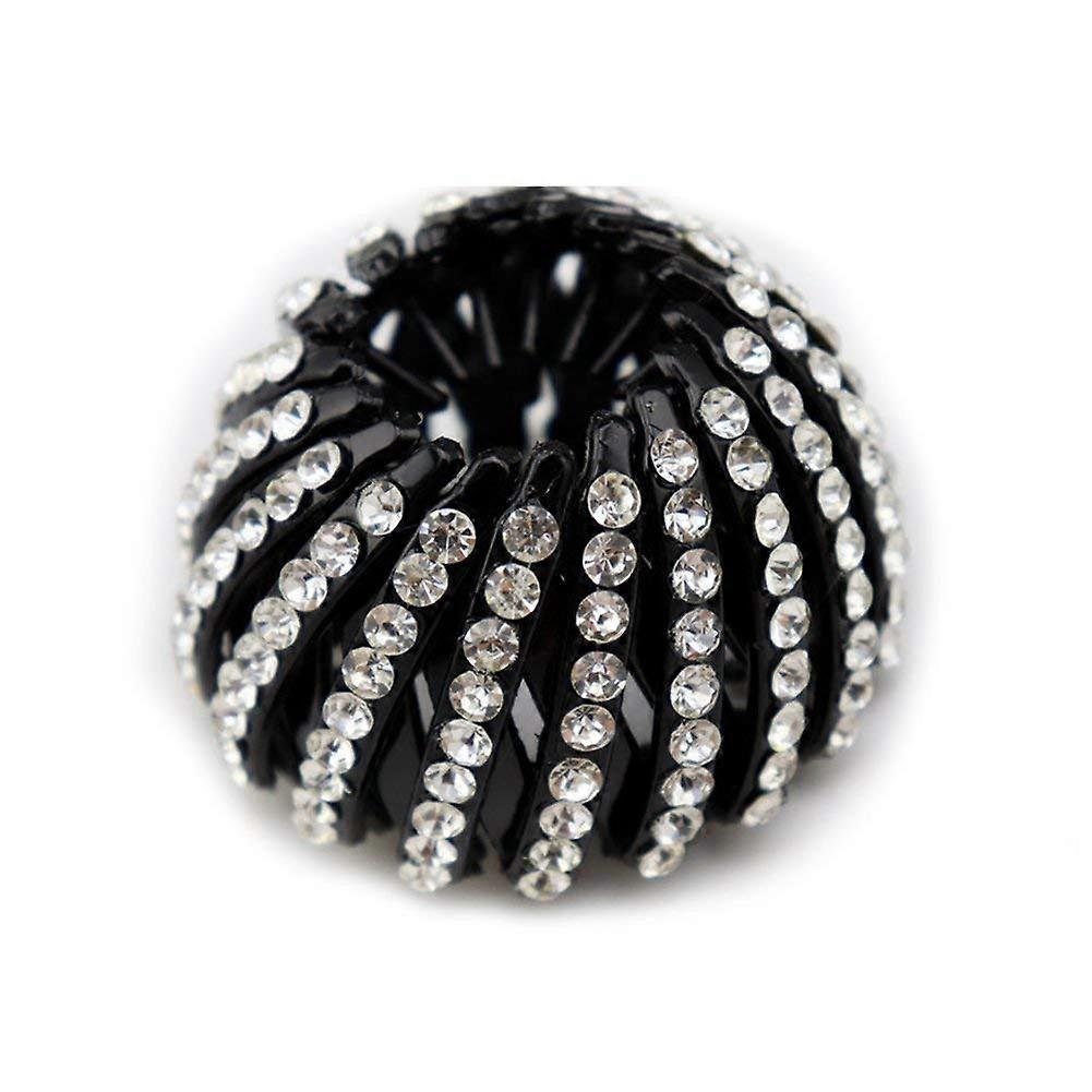 Hair Bun Holder with Rhinestone Expanding Claw Clip Adjustable Size for Thick or Thin Hair White M