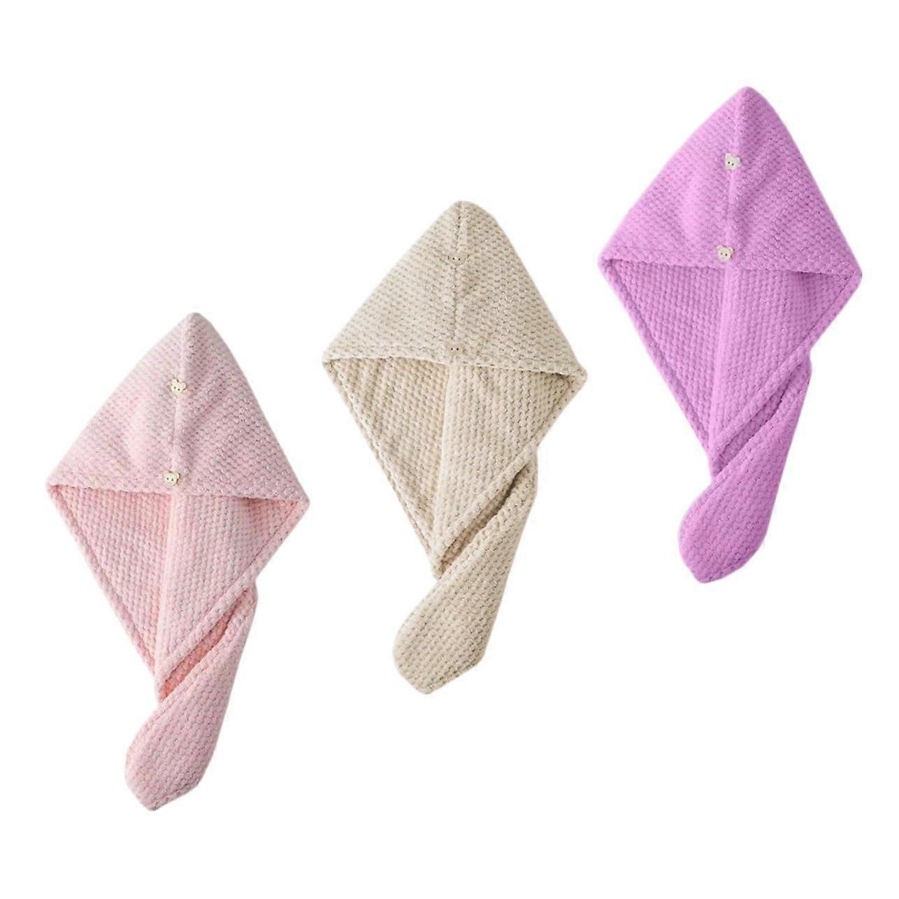 3pcs Microfiber Hair Wrap Towels Ultra Absorbent Soft Coral Fleece Fast Drying Caps for Women Pink Purple Brown