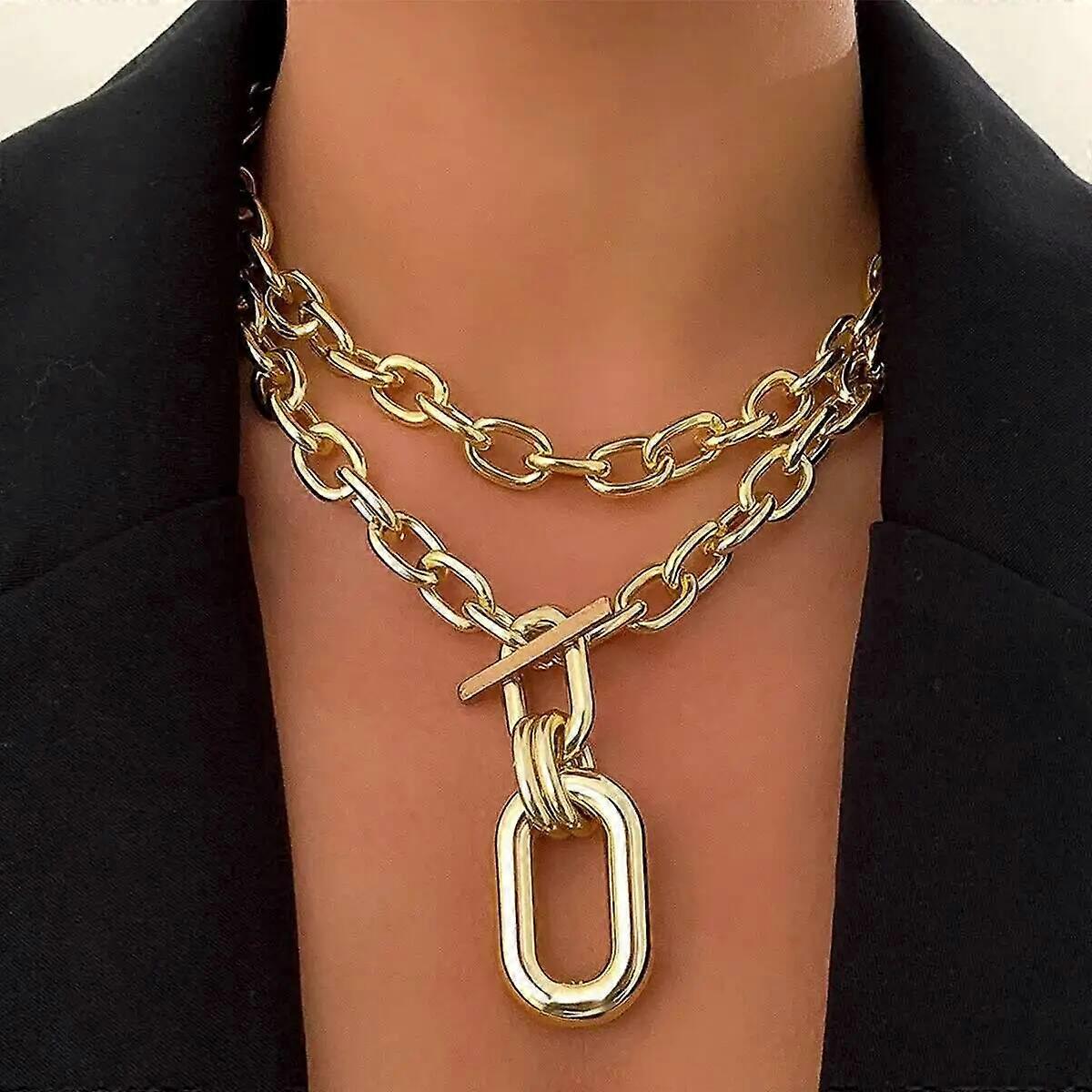 PuRui Retro Hyperbole CCB Metal Chunky Chain Pendant Choker Necklace Women Creative OT Buckle Clavicle Chain Steampunk Jewelry