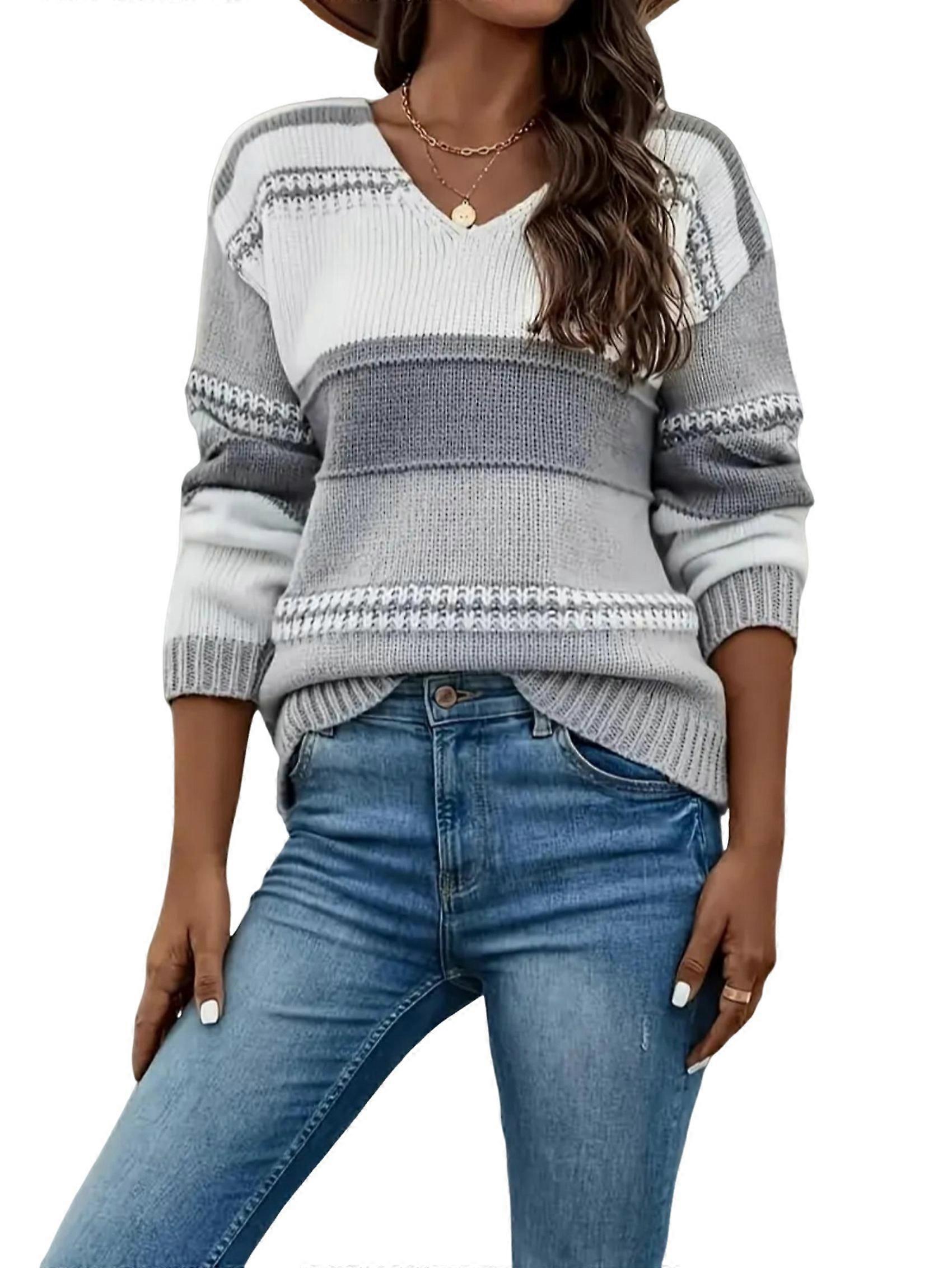 Female Sweaters Long Sleeve Tops Hollow Out Crochet Dressy Casual Outfits Silver Gray L
