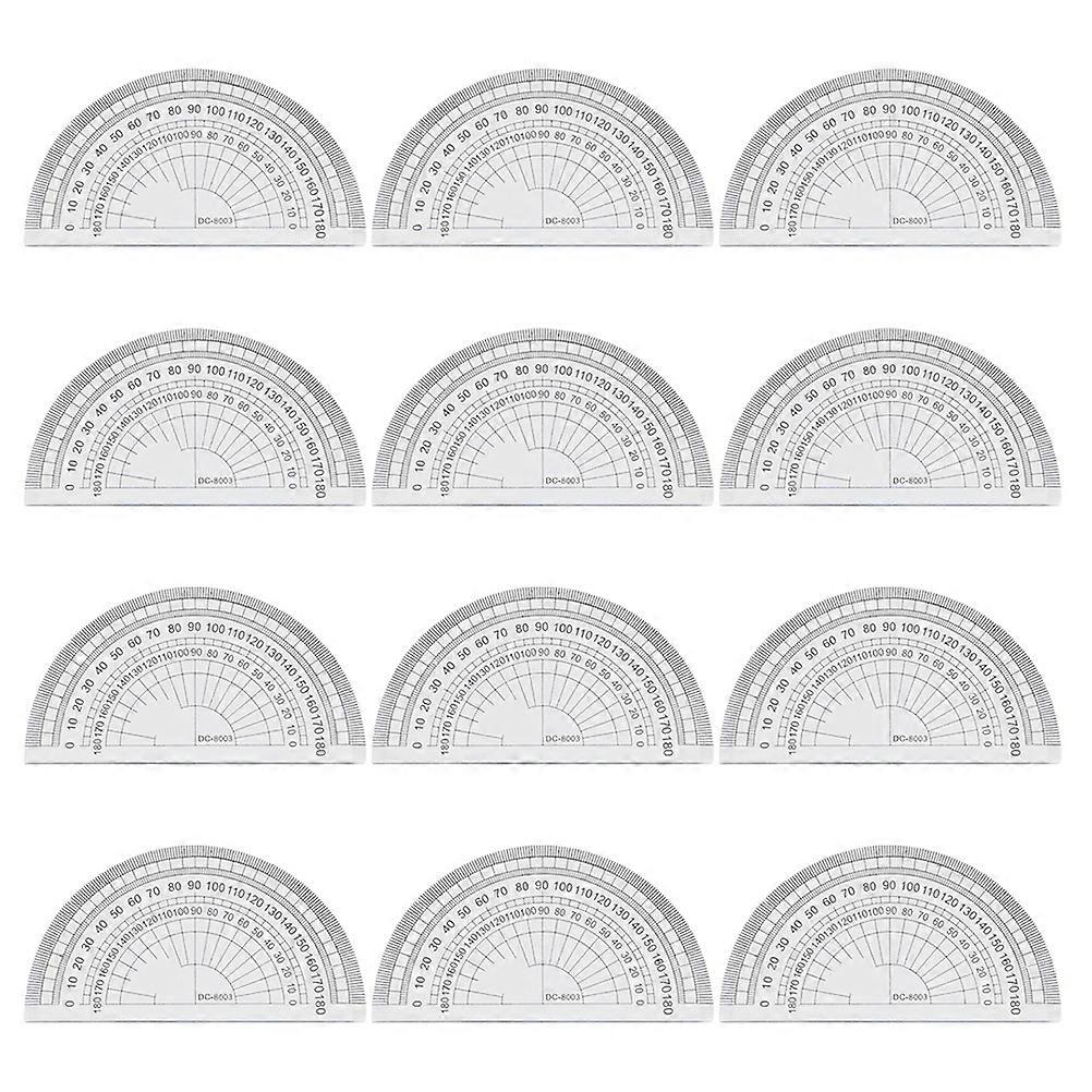 These angle measurement protractors can be applied for home, office, school students and teachers. It is very convenient to use, and it is good for completing your work, and a great for kids. Besides, it’s also an essential tool for any toolbox. Feature - ColorTransparent - Material: Plastic. - Size: 10x10x0.2cm/3.9x3.9x0.1inch. - Small size makes it easy to put on your books, notebooks and pencil case. - The black numbers are clear and easy to identify, then you can read quickly with great accuracy. - Half round shape: the plastic protractors are the common shape protractor, it’s universal, you can use it to settle the math problems frequently. - Thick and protractors: this clear plastic protractor is thick enough, thus they are not easy to snap. - Suitable for painting, measure, homework, technical drawing. You can send them to your friends and classmates as gifts. Package list: 15 x protractor
