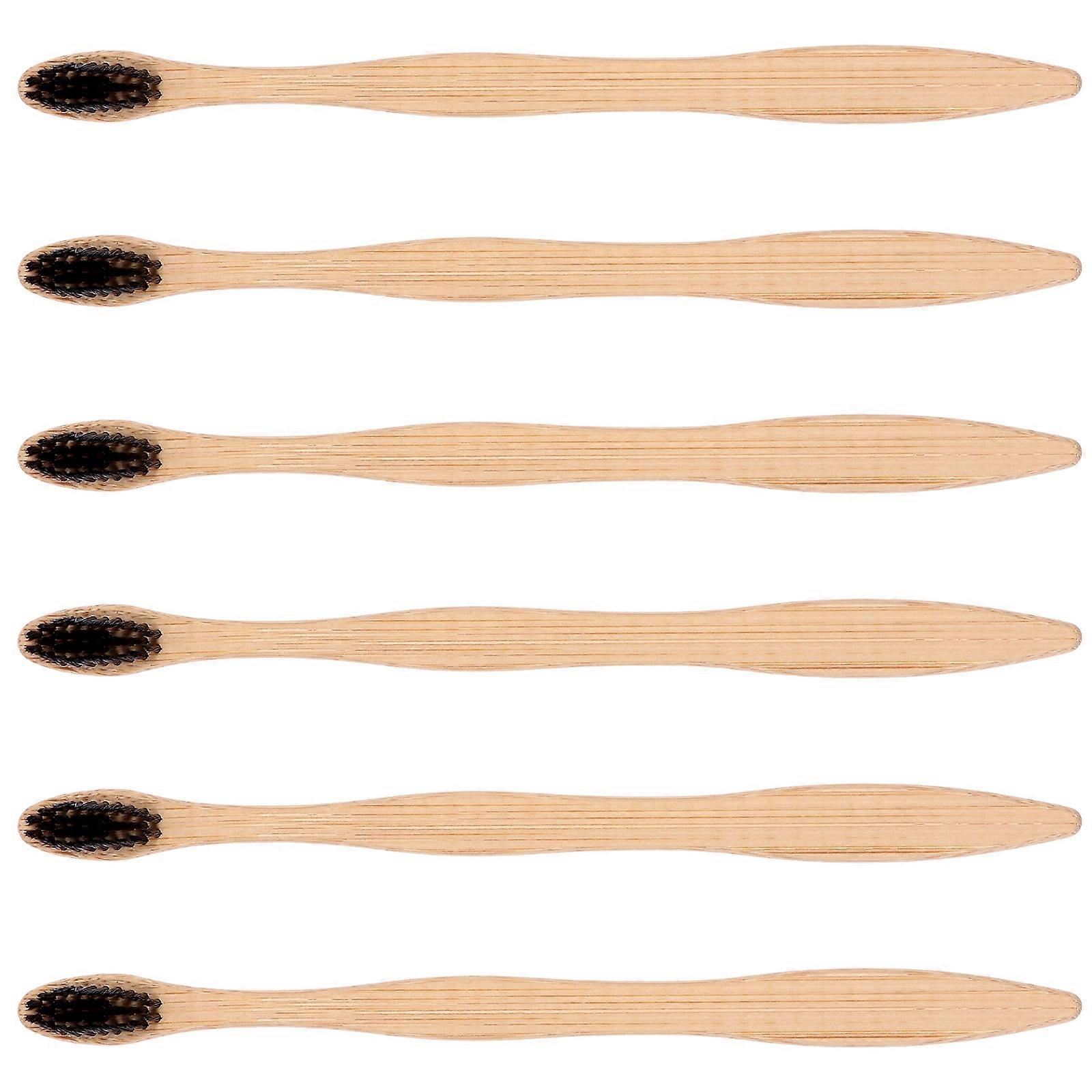 Bamboo Toothbrush Set for Cleaning with 6Pcs Wide Head Black Tooth Brushes