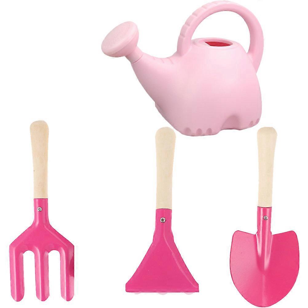 Children Gardening Tools Wood Handle Watering Can Set for Kids 4Pcs Pink