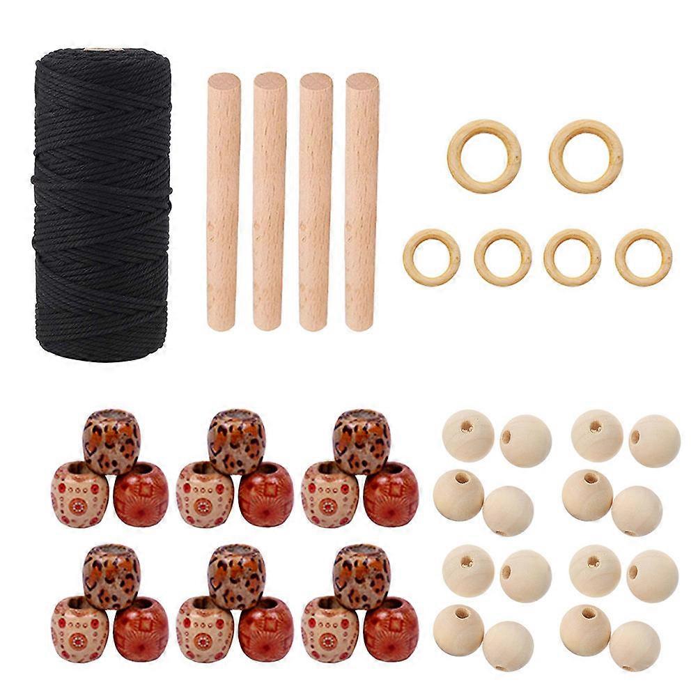 Macrame Cord Kit Featuring 133Pcs of Wood Beads and Beech Stick for DIY Crafts