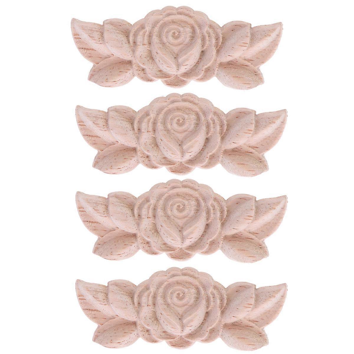 Decorative Wood Carvings Onlay For Corners Solid Wood Furniture Appliques 4Pcs For Wall And Door Decoration