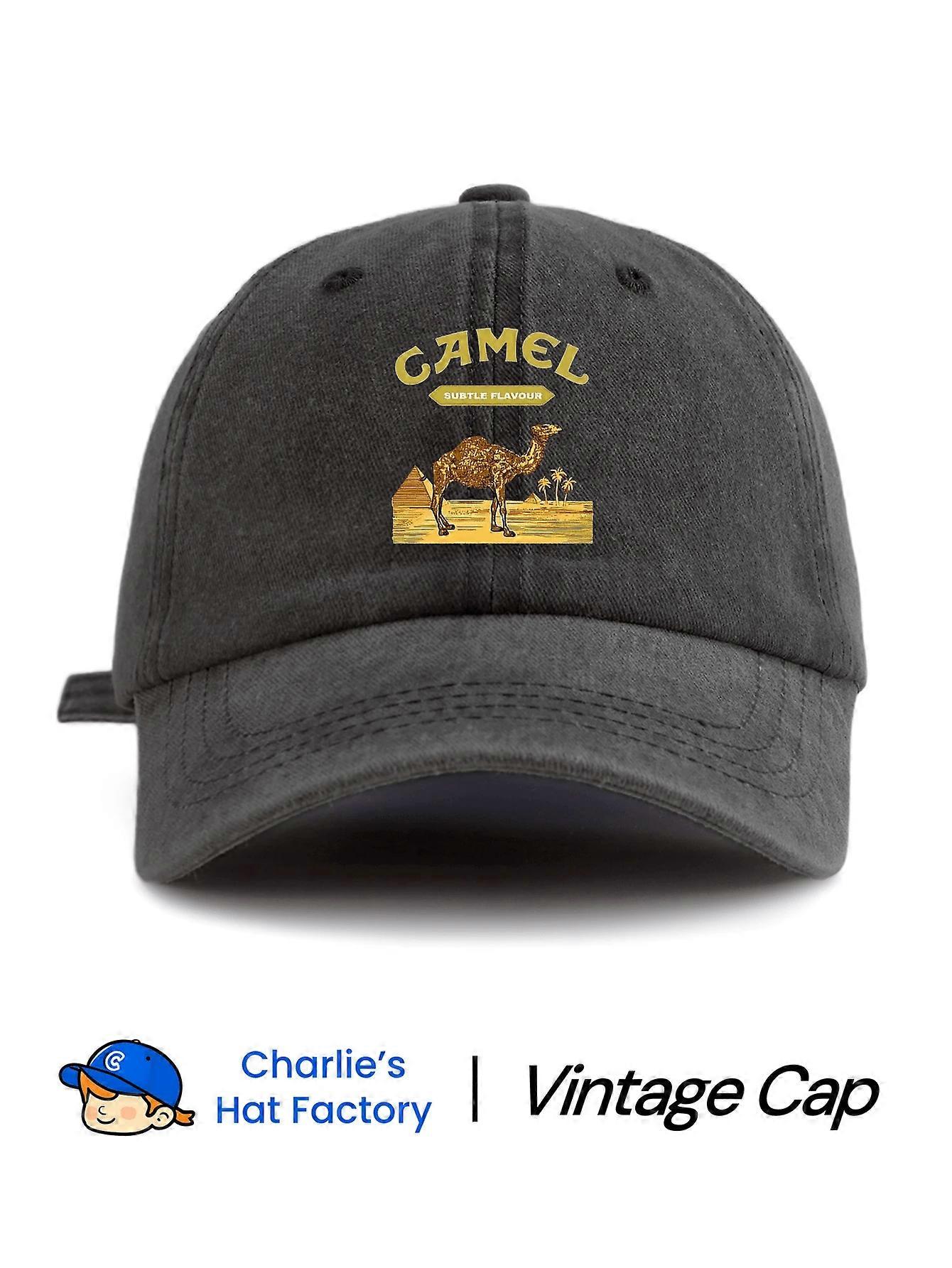 Washed Dark Grey "Camel" Vintage Graphic Baseball Cap | Retro Streetwear Inspired Casual Hat